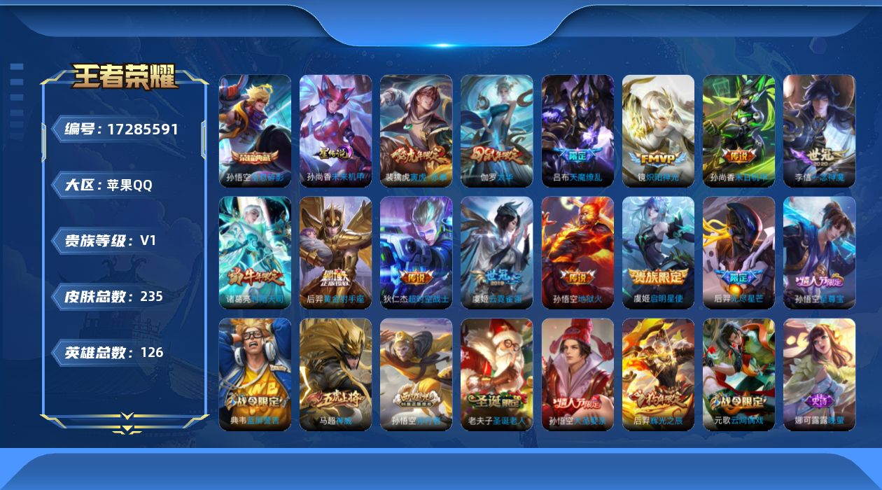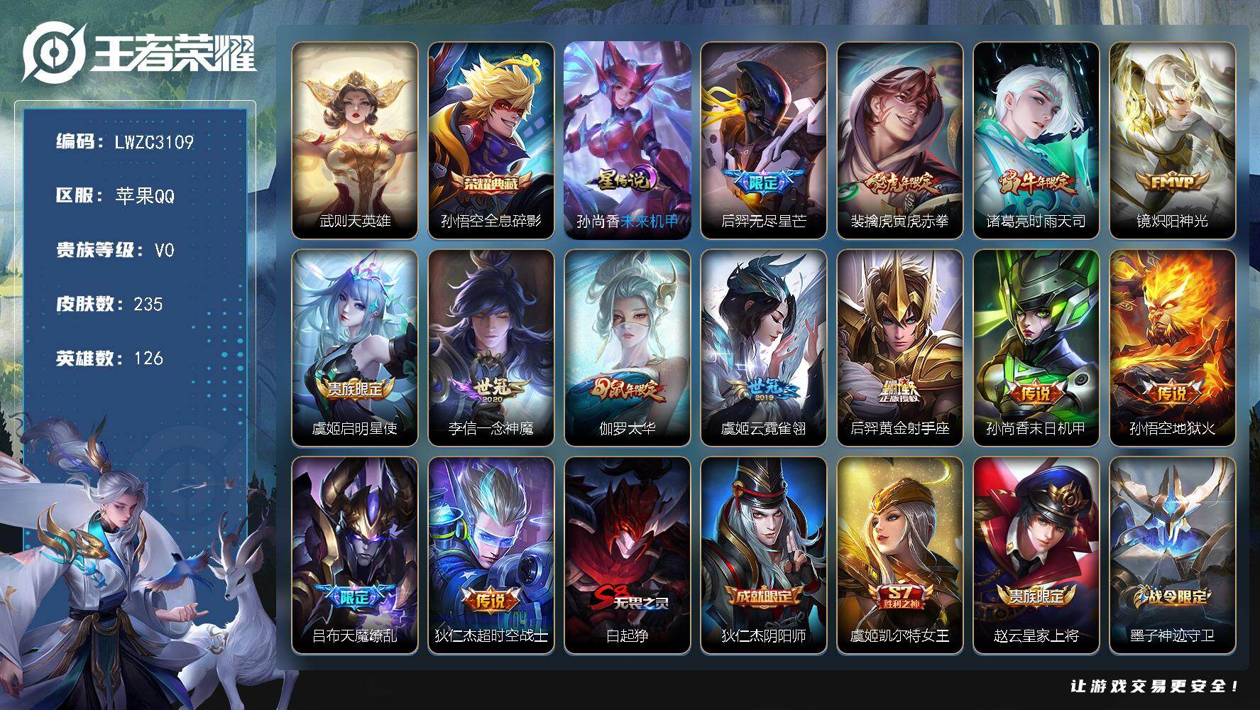 [17285591]可二次【特价出售/店主推荐/1省标/1市标】:苹果Q-V8-尊贵铂金III段位-126英雄-235皮肤-1典藏皮肤-1典藏英雄-1星元-13传说-51史诗