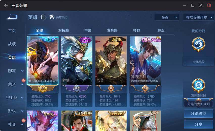 - [16325910]安卓Q-V7-荣耀黄金I段位-125英雄-257皮肤-1典藏皮肤-15传说-57史诗 【英雄全皮】:空空儿全皮,影全皮 【荣耀典藏】:韩信弑枪猎影 【传说皮肤】:后羿神树通天,杨玉环星之鸣奏,司空震愿照山河定,女娲愿照千秋盛,妲己愿照众生和,澜愿照九州拓,蔡文姬愿照福禄聚,虞姬愿照岁时盈,云缨幻光神枪,桑启鸣野蒿,云中君群星魔术团,虞姬启明星使,后羿黄金射手座,孙尚香末日机甲,孙悟空地狱火 【限定皮肤】:白起狰,蒙犽顽岩魄,大乔绒语心约,姜子牙天穹之誓,杨戬破阵退雄兵,狄仁杰阴阳师,虞姬凯尔特女王,赵云皇家上将,妲己热情桑巴,嬴政白昼王子,孙尚香蔷薇恋人,鲁班七号狮舞东方,孙膑妖精王,扁鹊炼金王,芈月重明,吕布猎兽之王,夏侯惇朔风刀,甄姬游园惊梦,曹操烛龙,典韦穷奇,典韦蓝屏警告,狄仁杰魔术师,狄仁杰万华元夜,达摩沙漠行僧,项羽海滩派对,老夫子圣诞老人,老夫子醍醐杖,程咬金演武夺筹,韩信飞衡,孙悟空大圣娶亲,牛魔御旌,虞姬霸王别姬,虞姬启明星使,钟馗驱傩正仪,杨玉环遇见飞天,杨戬潮玩骑兵,哪吒逐梦之翼,蔡文姬繁星吟游,太乙真人饕餮,鬼谷子原初探秘者,苏烈千军破阵,百里玄策原初追逐者,百里守约朱雀志,弈星混沌棋,公孙离蜜橘之夏,沈梦溪大漠名商,明世隐疑决卦,裴擒虎李小龙,狂铁御狮,米莱狄御霄,盾山御銮,上官婉儿梁祝,西施玲珑珍味,金蝉唐三藏,阿古朵江河有灵,张良古海寻踪,鬼谷子天穹祈灯,姬小满妄想食味,大乔乘龙忆丹青,沈梦溪龙舞盛年,鲁班七号蔬乡物语,李元芳蔬乡物语,刘邦剑破天穹,上官婉儿群星魔术团,程咬金群星魔术团,云中君群星魔术团,镜青焰无极,项羽苍威无极,刘备异域游侠,芈月浮光幕影,周瑜熔金海岸 【年限皮肤】:百里守约朱雀志,韩信飞衡,大乔乘龙忆丹青 【赛季限定】:孙膑妖精王,扁鹊炼金王,白起狰,芈月重明,夏侯惇朔风刀,曹操烛龙,典韦穷奇,狄仁杰万华元夜,达摩沙漠行僧,老夫子醍醐杖,程咬金演武夺筹,张良古海寻踪,牛魔御旌,虞姬凯尔特女王,钟馗驱傩正仪,太乙真人饕餮,鬼谷子原初探秘者,苏烈千军破阵,百里玄策原初追逐者,弈星混沌棋,沈梦溪大漠名商,明世隐疑决卦,狂铁御狮,米莱狄御霄,盾山御銮,鬼谷子天穹祈灯,刘邦剑破天穹,姜子牙天穹之誓 【战令限定】:嬴政白昼王子,鲁班七号狮舞东方,吕布猎兽之王,典韦蓝屏警告,杨戬潮玩骑兵,西施玲珑珍味,鲁班七号蔬乡物语,李元芳蔬