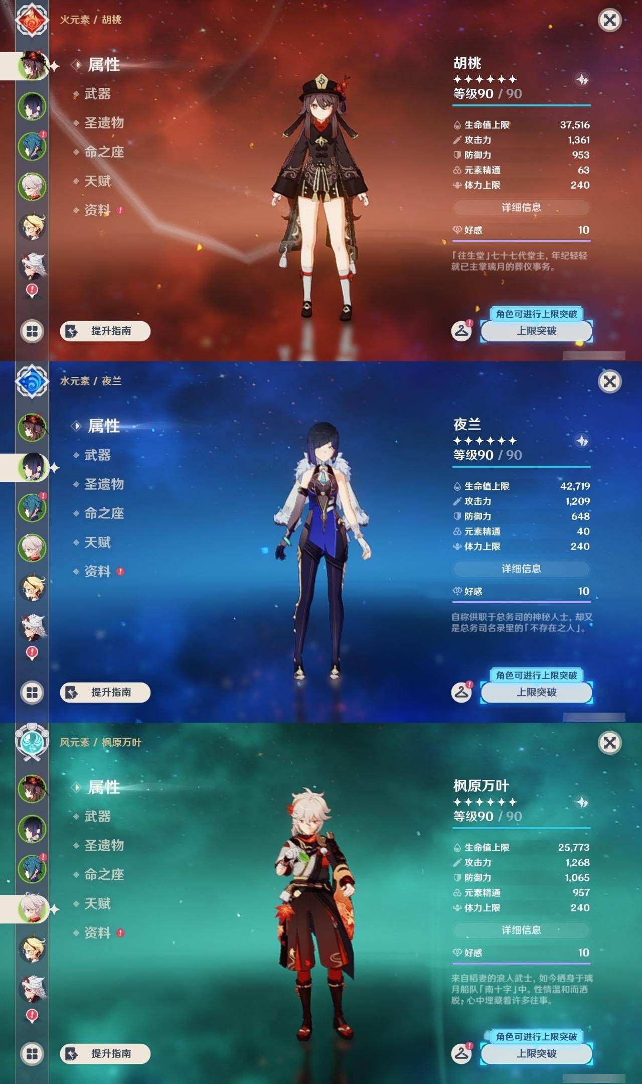 胡桃,枫原万叶,荒泷一斗,魈,雷电将军,宵宫,琴,七七,刻晴,莫娜,迪卢克