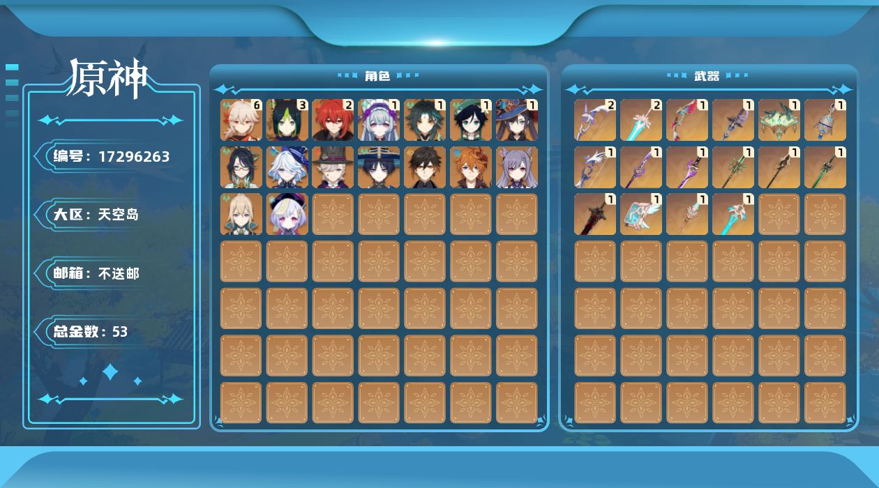 [17296263]60级/53黄/女主/17个五星角色/19个五星武器