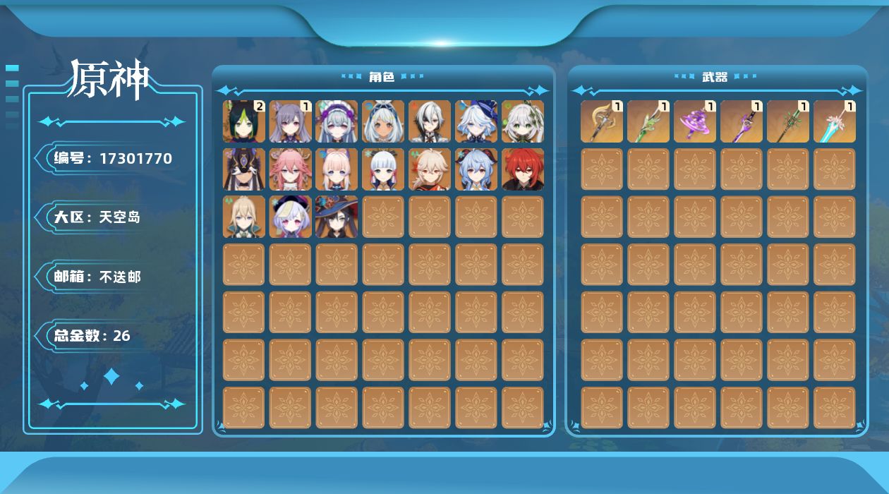 [17301770]57级/26黄/女主/17个五星角色/6个五星武器