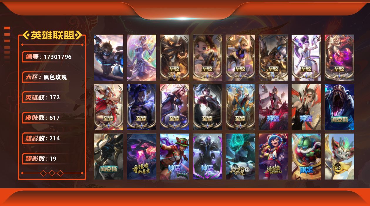 [17301796]【特价出售/店主推荐】未定级段位-172英雄-617皮肤-214炫彩-2终极-20神话-110限定-69传说-132史诗