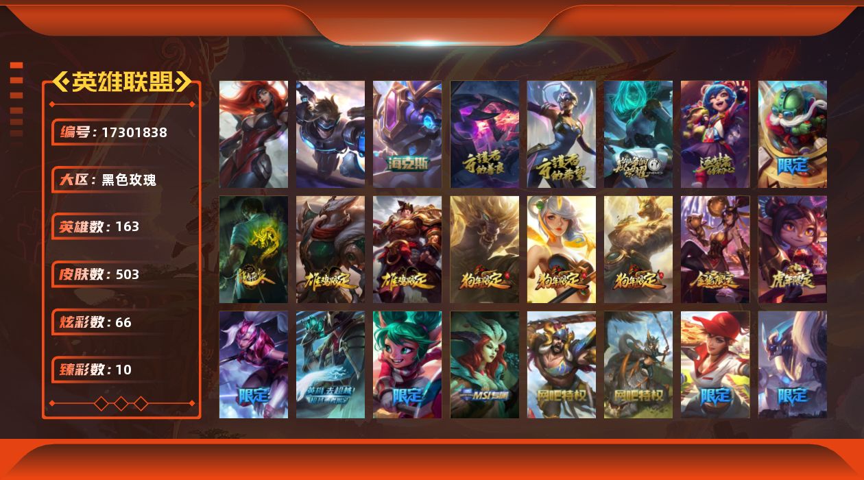 [17301838]【店主推荐捡漏号】未定级段位-163英雄-503皮肤-66炫彩-2终极-5神话-94限定-46传说-133史诗