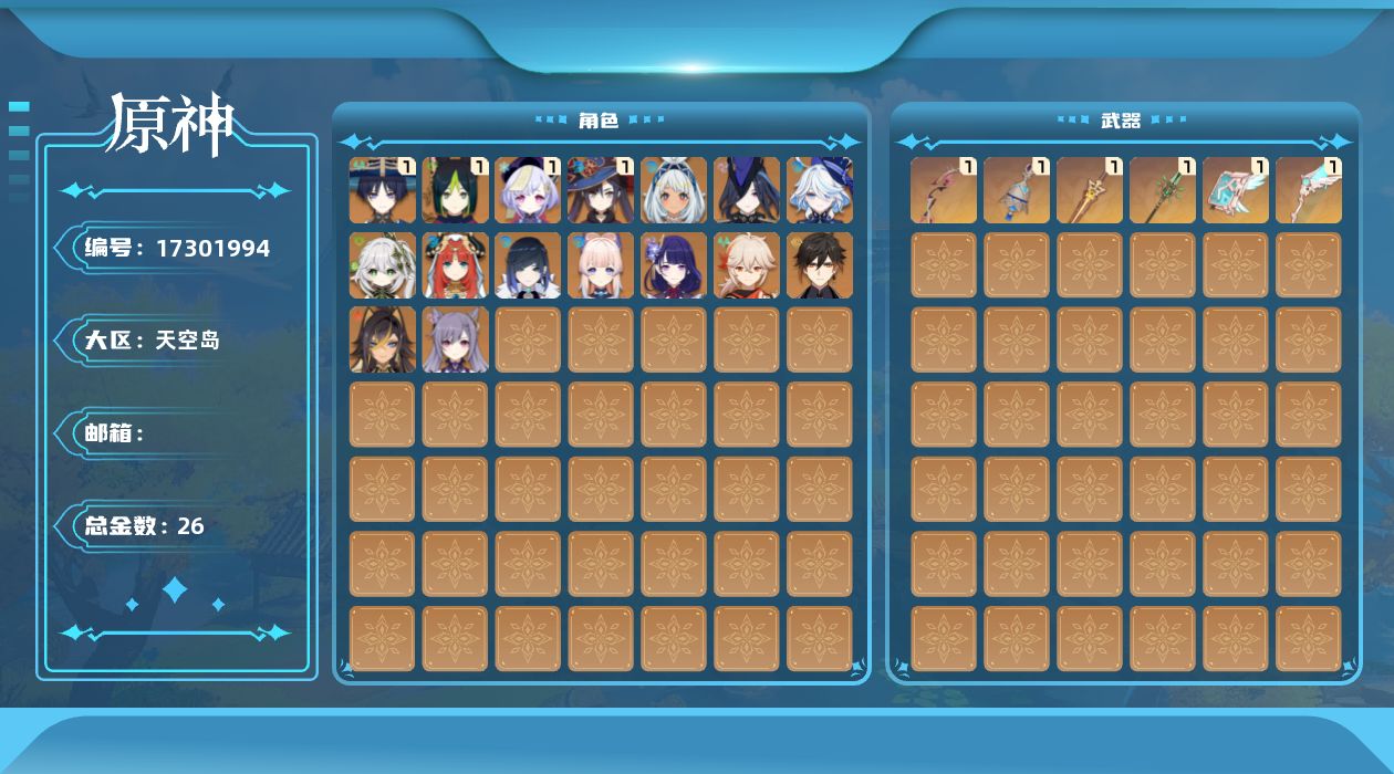 [17301994]57级/26黄/男主/16个五星角色/6个五星武器