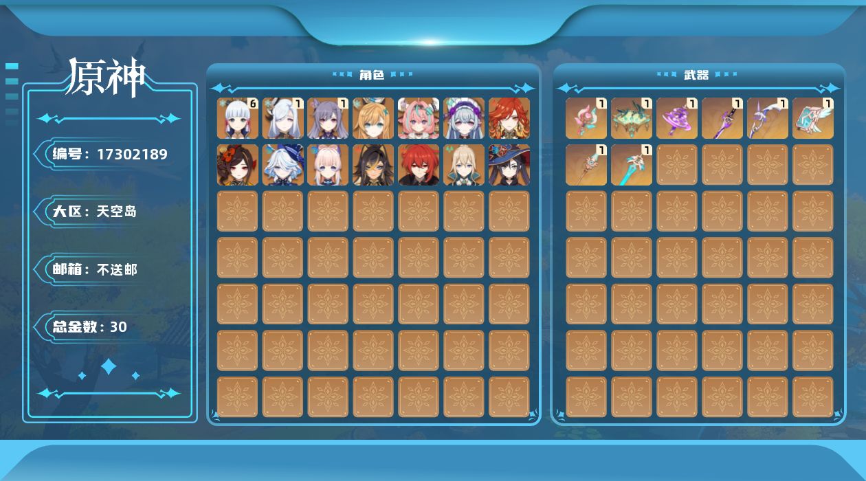 [17302189]59级/30黄/女主/14个五星角色/8个五星武器