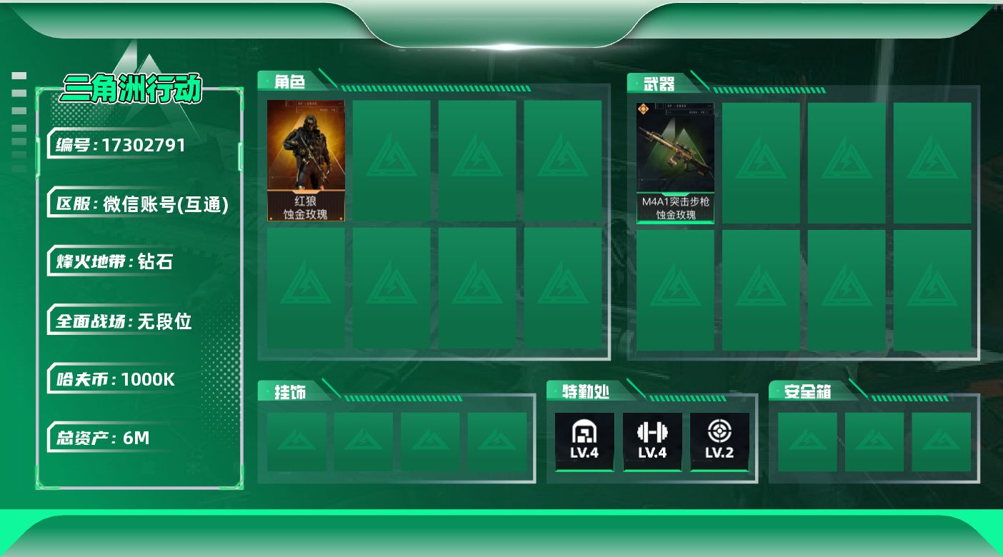 - [13909717]【店主推荐捡漏号!可直接换绑】 总资产213m 21579k哈伏币-189m流动资产-60烽火等级-青铜-1战场等级-无军衔 【干员外观】:骇爪-维什戴尔,红狼-电锯惊魂 【近战皮肤】:近战-黑鹰 【典藏外观】:M14射手步枪-花岗岩 【传说级普通外观】:SG552突击步枪-运动员,SCAR-H战斗步枪-启航,KC17突击步枪-电锯惊魂,R93狙击步枪-维什戴尔 【史诗级普通外观】:AS Val突击步枪-百步穿杨,腾龙突击步枪-猎鳄行动,MP5冲锋枪-战术竞备,Vector冲锋枪-异域战争,M700狙击步枪-竞技风 【稀有级普通外观】:SCAR-H战斗步枪-荣耀列队,MP5冲锋枪-弄臣,Vector冲锋枪-先锋,SMG-45-行动开启,SMG-45冲锋枪-幻影结构,M1014霰弹枪-幻影结构,Mini-14射手步枪-荣耀列队,SKS射手步枪-弄臣,G18-星链科技 【普通级普通外观】:M4A1突击步枪-粉色涂装,M4A1突击步枪-海色,QBZ95-1突击步枪-海浪,QBZ95-1突击步枪-海色,K416突击步枪-几何迷彩,K416突击步枪-高雅黑,M7战斗步枪-红色涂装,SG552突击步枪-浅蓝涂装,G3战斗步枪-高雅黑,PTR-32突击步枪-黄蜂,MP5冲锋枪-海色,MP5冲锋枪-黄蜂,M1014霰弹枪-高雅黑,M1014霰弹枪-海浪,M249轻机枪-黄蜂,SV-98狙击步枪-红色涂装,沙漠之鹰-海浪 【军牌】:军牌-展示,军牌-神秘艺术,军牌-幸福国,军牌-信誉优秀 【挂饰】:挂饰-肘击王,挂饰-麦小鼠,挂饰-黄金视野,挂饰-维什戴尔,挂饰-崩岩重炮,挂饰-暗行哨兵,挂饰-启程