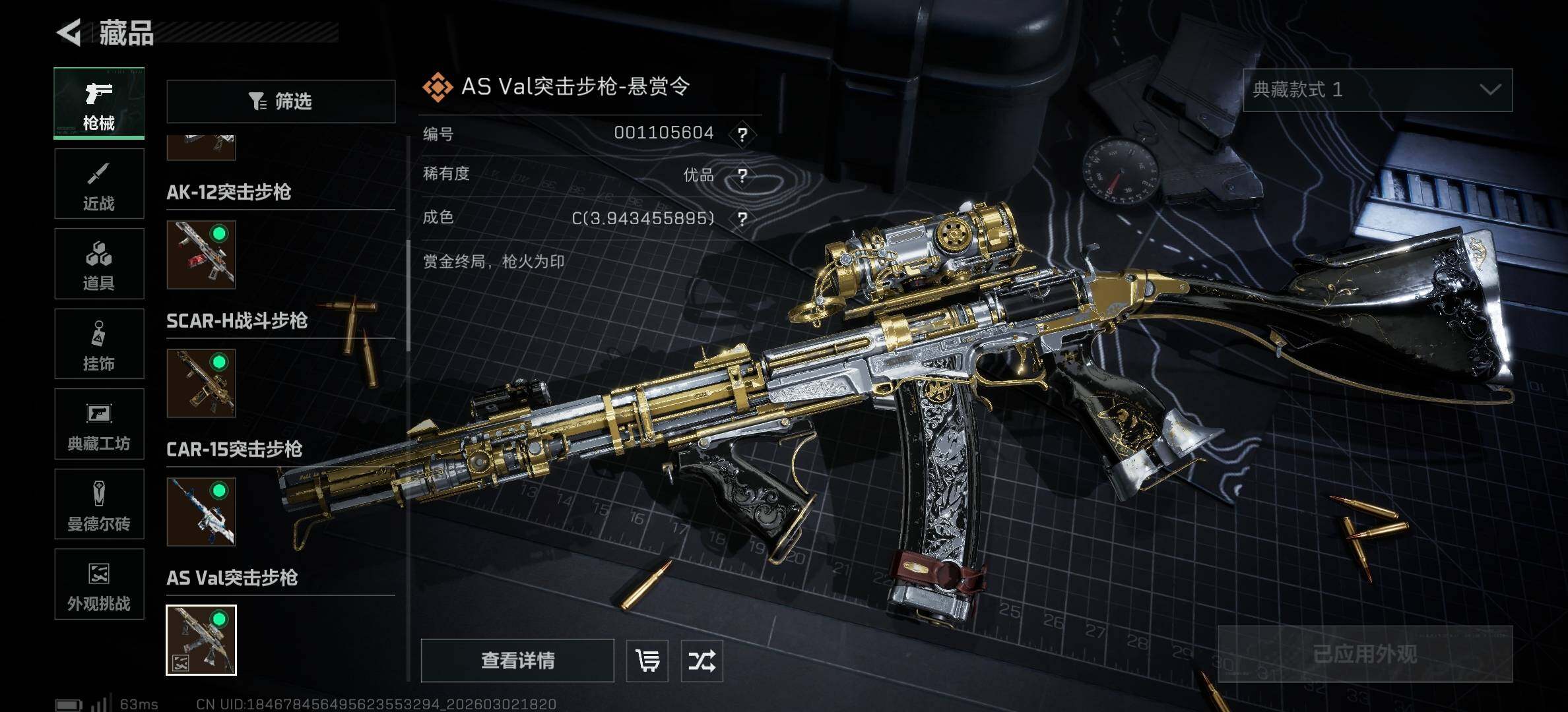 【典藏外观成色】:M7战斗步枪-棱镜攻势S2(优品C),AS Val突击步枪-悬赏令(优品C)