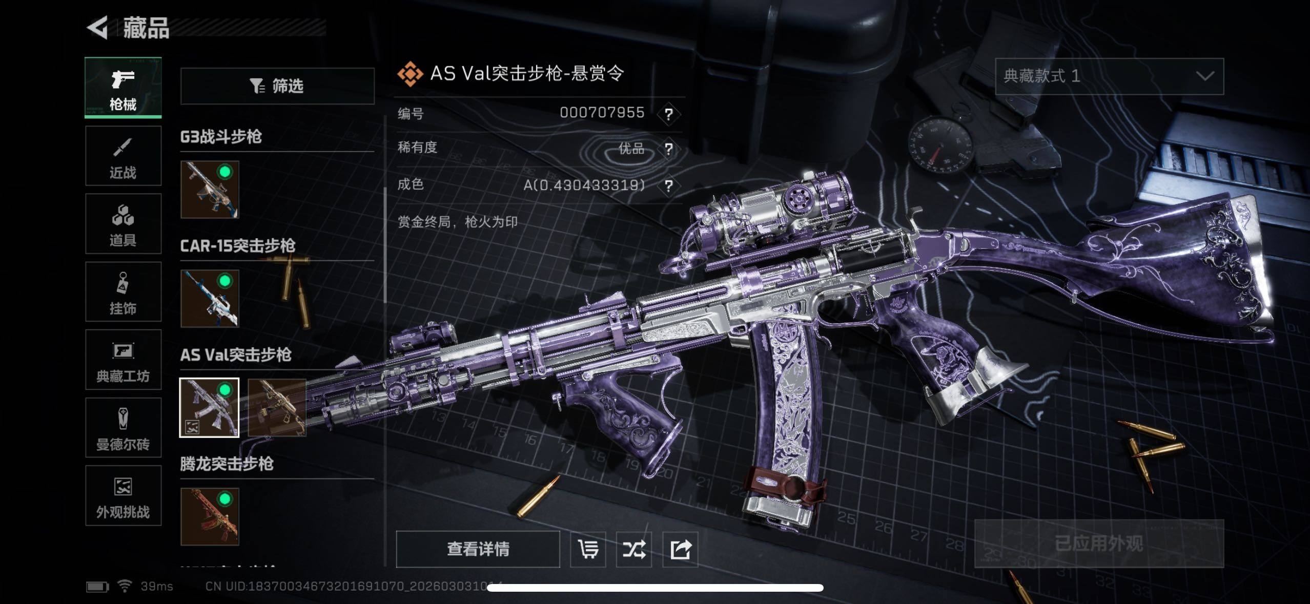 【典藏外观成色】:AS Val突击步枪-悬赏令(优品A)