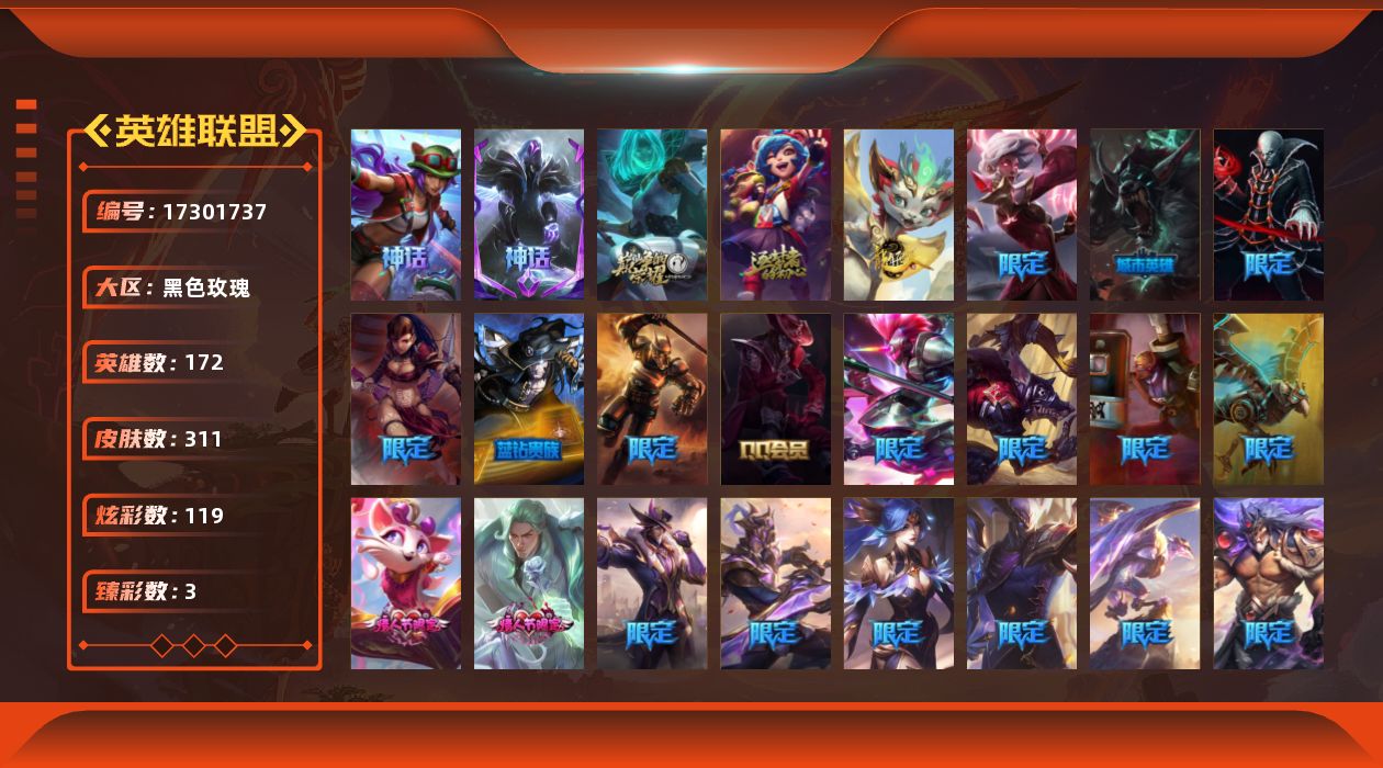 [17301737]【特价出售/店主推荐】青铜段位-172英雄-311皮肤-119炫彩-0终极-5神话-39限定-31传说-81史诗