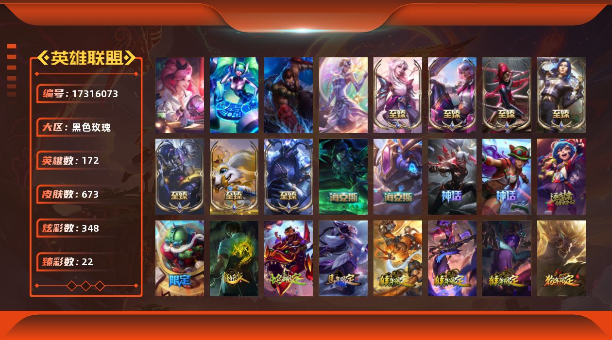 [17316073]【店主推荐捡漏号】未定级段位-172英雄-673皮肤-348炫彩-6终极-14神话-107限定-60传说-157史诗