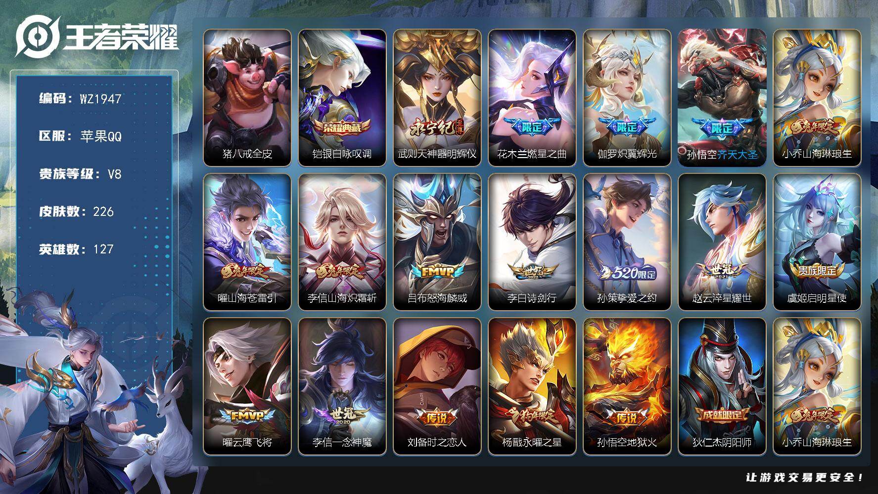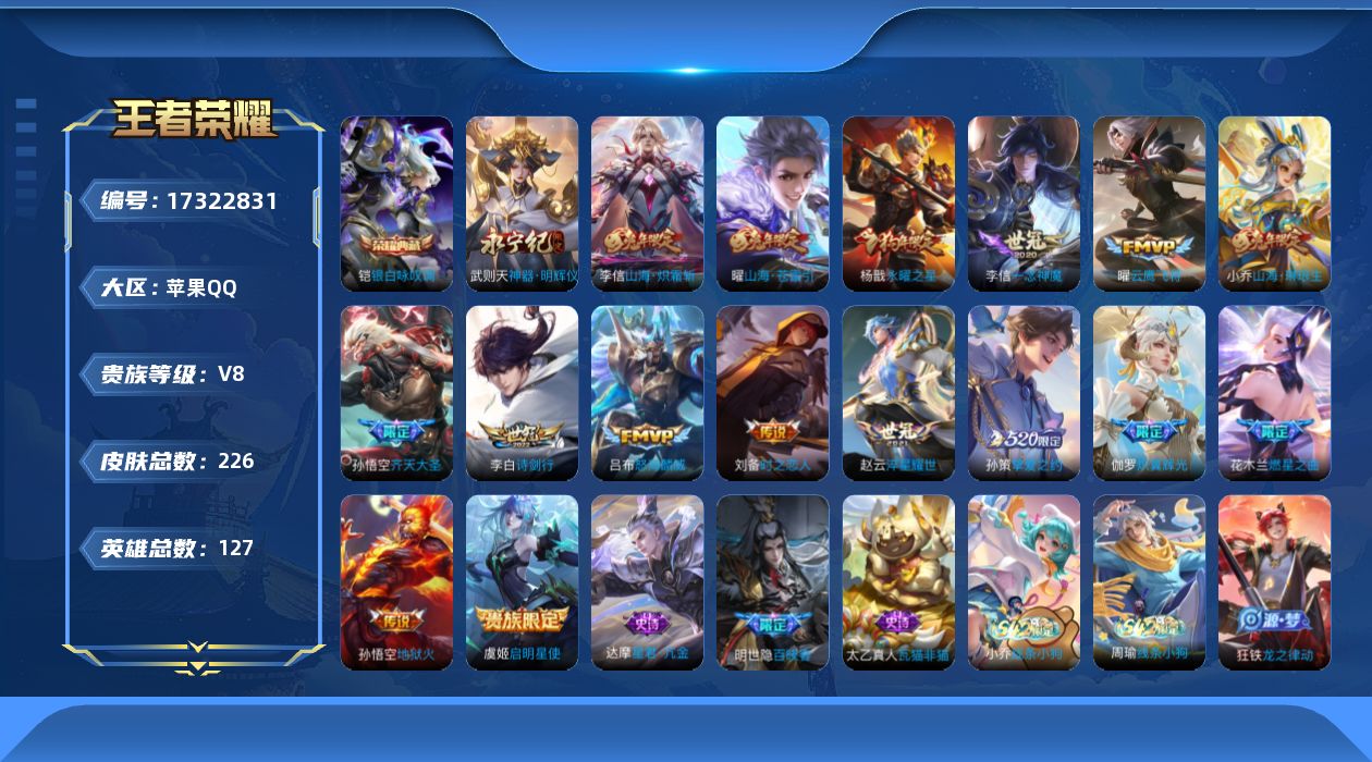 [17322831]苹果Q-226皮肤-1典藏皮肤-1无双-16传说-60史诗