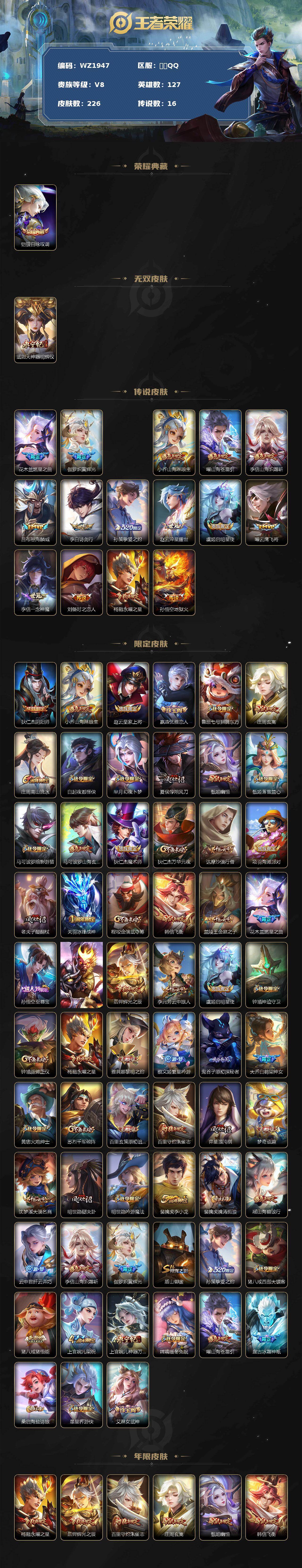 - [15239113]【店主推荐捡漏号!可直接换绑】安卓Q-V9-最强王者段位-127英雄-368皮肤-3典藏皮肤-1无双-34传说-111史诗 【英雄全皮】:阿轲全皮,鬼谷子全皮,云中君全皮,李信全皮,蒙恬全皮,海诺全皮 【荣耀典藏】:李白鸣剑曳影,花木兰九霄神辉,关羽赤影疾锋 【无双皮肤】:韩信群星魔术团 【传说皮肤】:后羿神树通天,云中君群星魔术团,孙策乘龙淬吴钩,马超琥珀纪元,澜逐花归海,伽罗炽翼辉光,孙悟空齐天大圣,小乔山海琳琅生,曜山海苍雷引,李信山海炽霜斩,孙策挚爱之约,孙策末日机甲,裴擒虎寅虎赤拳,鲁班七号寅虎瑞焰,赵云淬星耀世,周瑜音你心动,李元芳飞鸢探春,公孙离祈雪灵祝,镜炽阳神光,虞姬启明星使,曜云鹰飞将,李信一念神魔,刘备时之恋人,张良黄金白羊座,干将莫邪久胜战神,达摩黄金狮子座,百里玄策白虎志,花木兰冠军飞将,貂蝉仲夏夜之梦,李白凤求凰,孙尚香末日机甲,宫本武藏地狱之眼,吕布天魔缭乱,狄仁杰超时空战士 【限定皮肤】:白起狰,大乔绒语心约,姜子牙天穹之誓,杨戬破阵退雄兵,狄仁杰阴阳师,虞姬凯尔特女王,小乔山海琳琅生,赵云皇家上将,赵云龙胆,墨子神迹守卫,嬴政优雅恋人,嬴政白昼王子,鲁班七号狮舞东方,鲁班七号寅虎瑞焰,高渐离死亡摇滚,阿轲迷踪丽影,扁鹊炼金王,芈月重明,芈月白晶晶,吕布天魔缭乱,吕布猎兽之王,周瑜真爱至上,周瑜赤莲之焰,元歌云间偶戏,元歌无心,夏侯惇朔风刀,曹操烛龙,典韦穷奇,典韦蓝屏警告,马可波罗逐梦之星,马可波罗山海玄木吟,狄仁杰魔术师,狄仁杰万华元夜,达摩沙漠行僧,项羽海滩派对,老夫子醍醐杖,老夫子航海奇遇记,关羽冰锋战神,程咬金演武夺筹,露娜一生所爱,刘邦夺宝奇兵,韩信逐梦之影,王昭君凤凰于飞,兰陵王驯魔猎人,兰陵王金庭之子,亚瑟潮玩骑士王,孙悟空至尊宝,孙悟空大圣娶亲,孙悟空孙行者,孙悟空齐天大圣,牛魔御旌,牛魔奔雷神使,李元芳银河之约,李元芳云中旅人,虞姬霸王别姬,虞姬启明星使,钟馗神迹守卫,钟馗驱傩正仪,女娲朔望之晖,干将莫邪冰霜恋舞曲,雅典娜黎明之约,蔡文姬繁星吟游,太乙真人饕餮,太乙真人华丽摇滚,鬼谷子原初探秘者,鬼谷子五谷丰年,黄忠烈魂,铠青龙志,苏烈千军破阵,百里玄策白虎志,百里玄策原初追逐者,弈星混沌棋,梦奇顽趣,公孙离蜜橘之夏,公孙离祈雪灵祝,公孙离玉兔公主,沈梦溪星空之诺,沈梦溪大漠名商,明世隐疑决卦,裴擒虎寅虎赤拳,裴