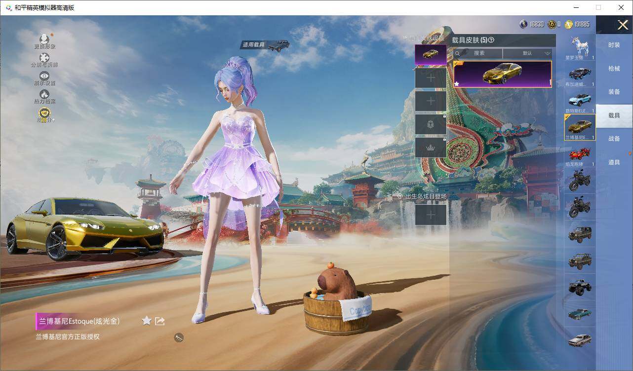 【粉色载具】:兰博基尼Estoque(炫光金),路特斯ELETRE(冰川蓝),布加迪威龙(海洋蓝),焰龙咆哮,星梦玉骢