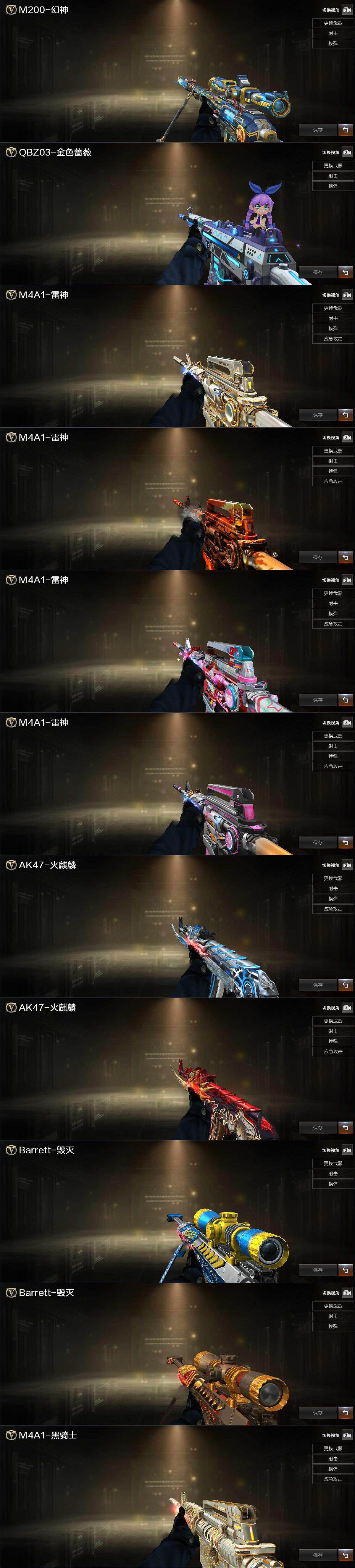 【热门武器】:QBZ03-金色蔷薇,M14EBR-玄武,M200-幻神,凤吟之魄,M4A1-黑骑士*2,COP 357-幻灵,沙鹰-修罗*3