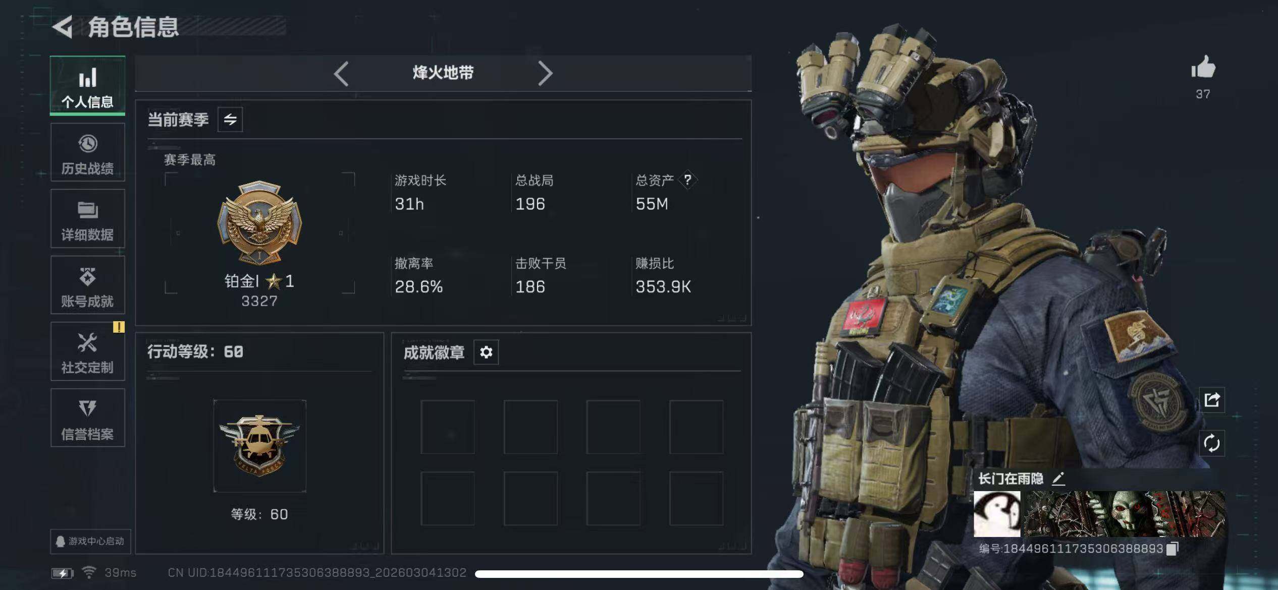 [17327869]【特价出售/店主推荐】54m总资产-8284k哈伏币-60烽火等级-铂金-22战场等级-列兵
