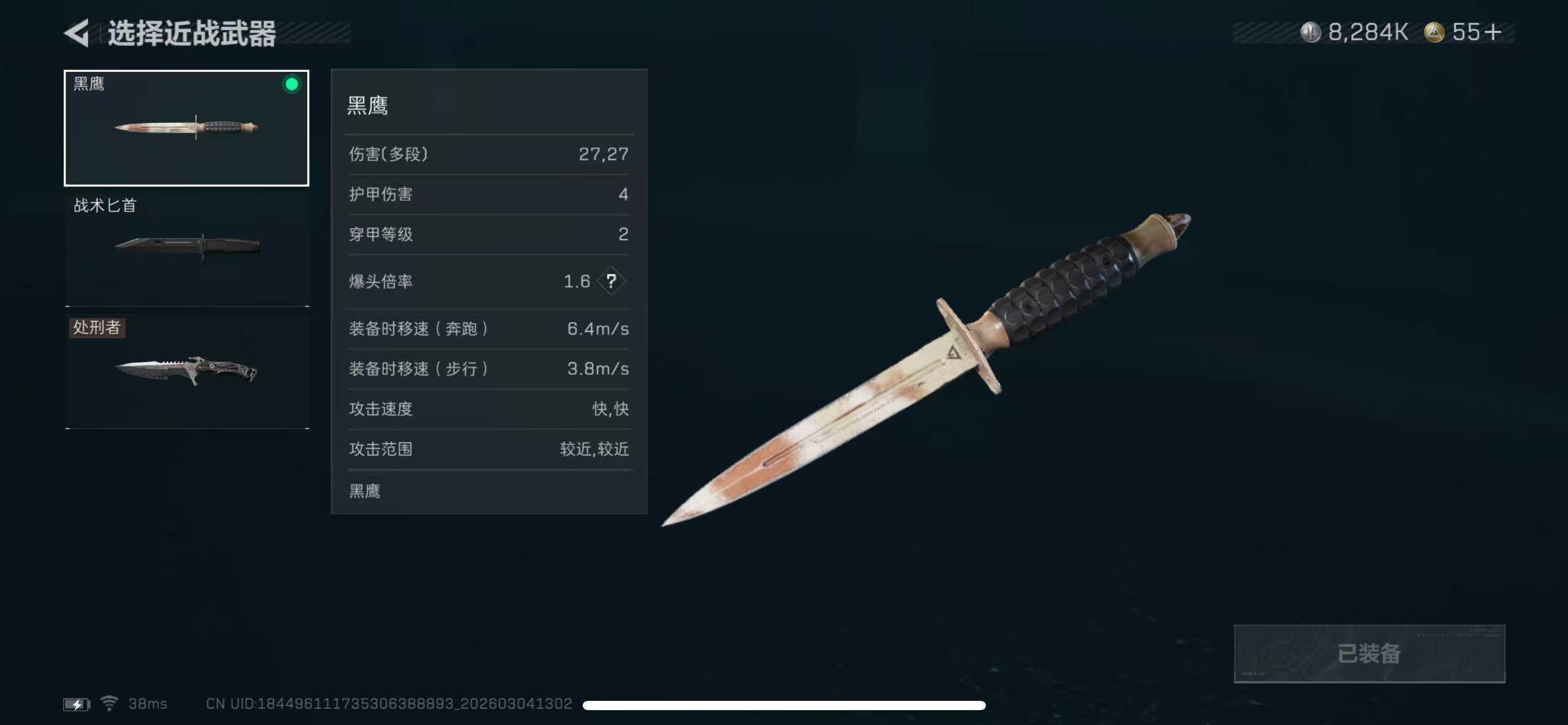 【近战皮肤】:近战-处刑者1级,近战-黑鹰