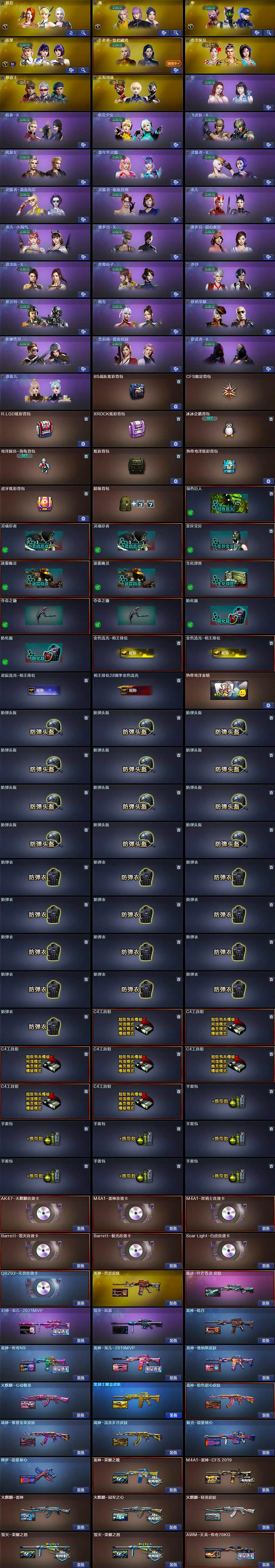 【皮肤】:幻神-宠儿-2021MVP,白虎-梅雀衔霜 皮肤,裁决-叶芒苍灵 皮肤,雷神-暗月,雷神-荣耀之魄,M4A1-雷神-CFS 2019,雷神-传奇N9,雷神-宠儿-2019MVP,雷神-烈虎皮肤,雷神-维纳斯皮肤,火麒麟-雷神,火麒麟-冠军之心,火麒麟-轻羽皮肤,火麒麟-心动糖果,毁灭-荣耀之怒*2,毁灭-风暴,毁灭-英雄计划 皮肤,黑骑士耀金皮肤,幻影-量子聚变 皮肤,战神-粉色甜心皮肤,战神-紫绶金章皮肤,战神-流金岁月皮肤,AWM-天龙-传奇70KG,极光-能量核心,修罗-能量核心