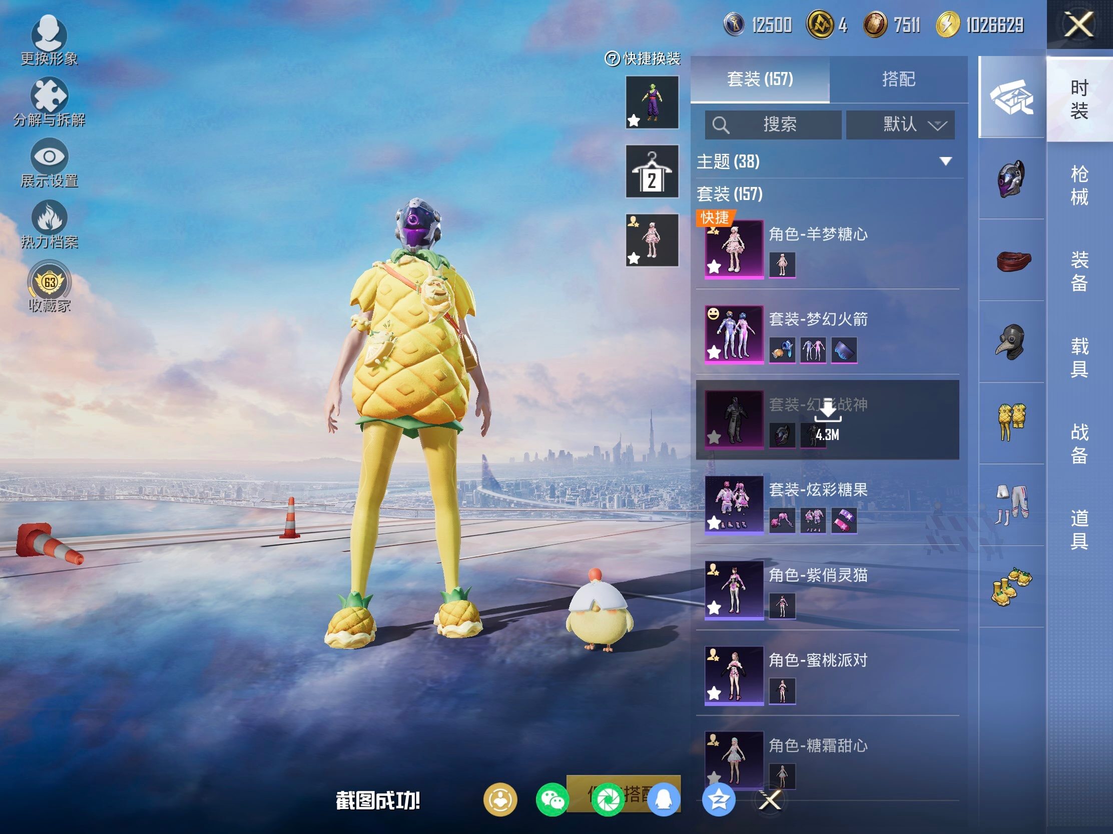 【粉色套装】:粉装-幻影战神,粉装-梦幻火箭,粉装-蓝莓炮弹,粉装-炎氏战神,角色-羊梦糖心