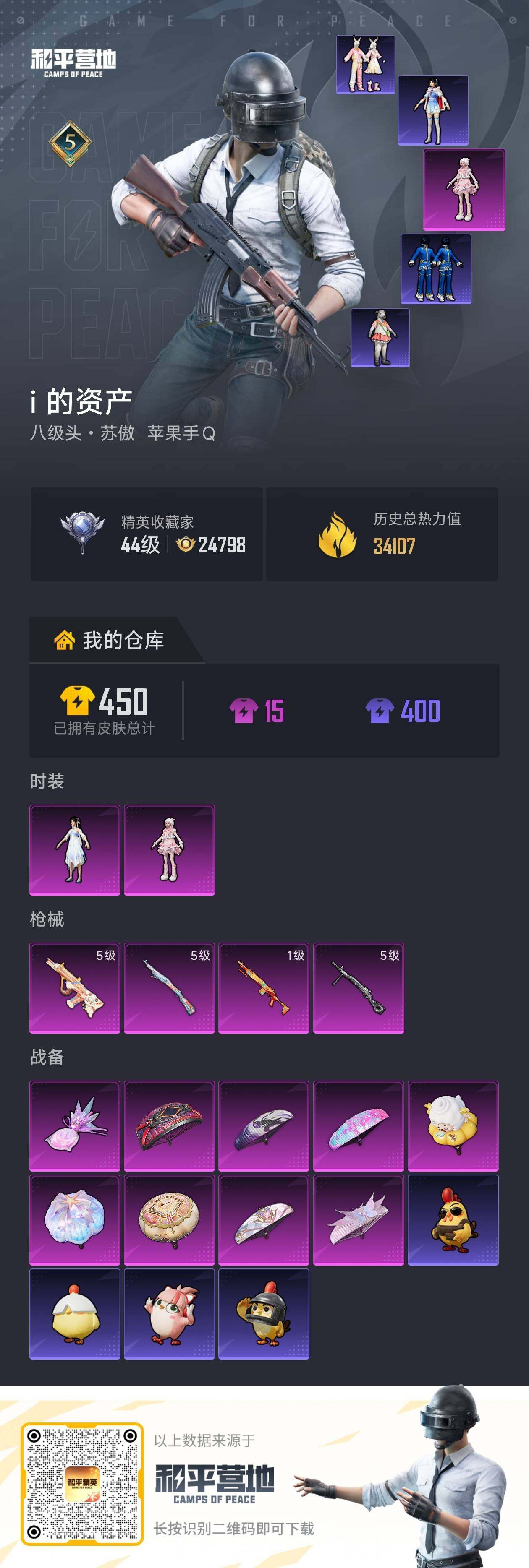 - [17664938]精品金迪迦【特价出售/店主推荐】苹果 手Q-2粉装-5特效枪-27053热力值-9王牌印记-63套装-86枪皮【热门品类】:套装-浪漫天命【粉色套装】:角色-闪耀迪迦,角色-智耀战神【粉色枪皮等级】:AKM-炫紫旋律(六级),SCAR-L-纯梦嫁纱(五级),ACE32-萌骑漫游(一级),Kar98K-巳巳如意(四级),DP-28-豹影疾电(三级)