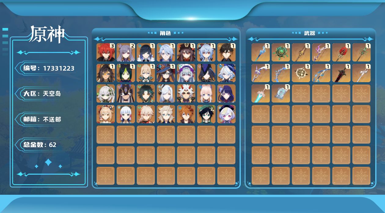 [17331223]60级/62黄/女主/28个五星角色/20个五星武器