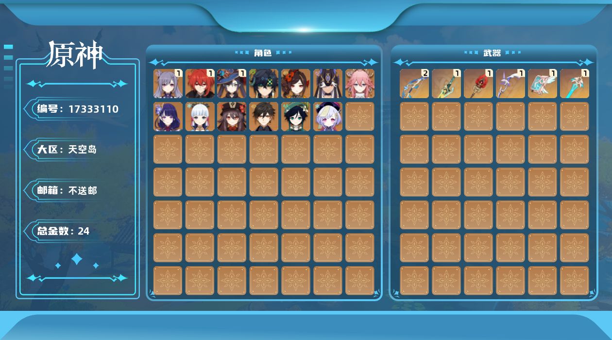 [17333110]58级/24黄/男主/14个五星角色/6个五星武器