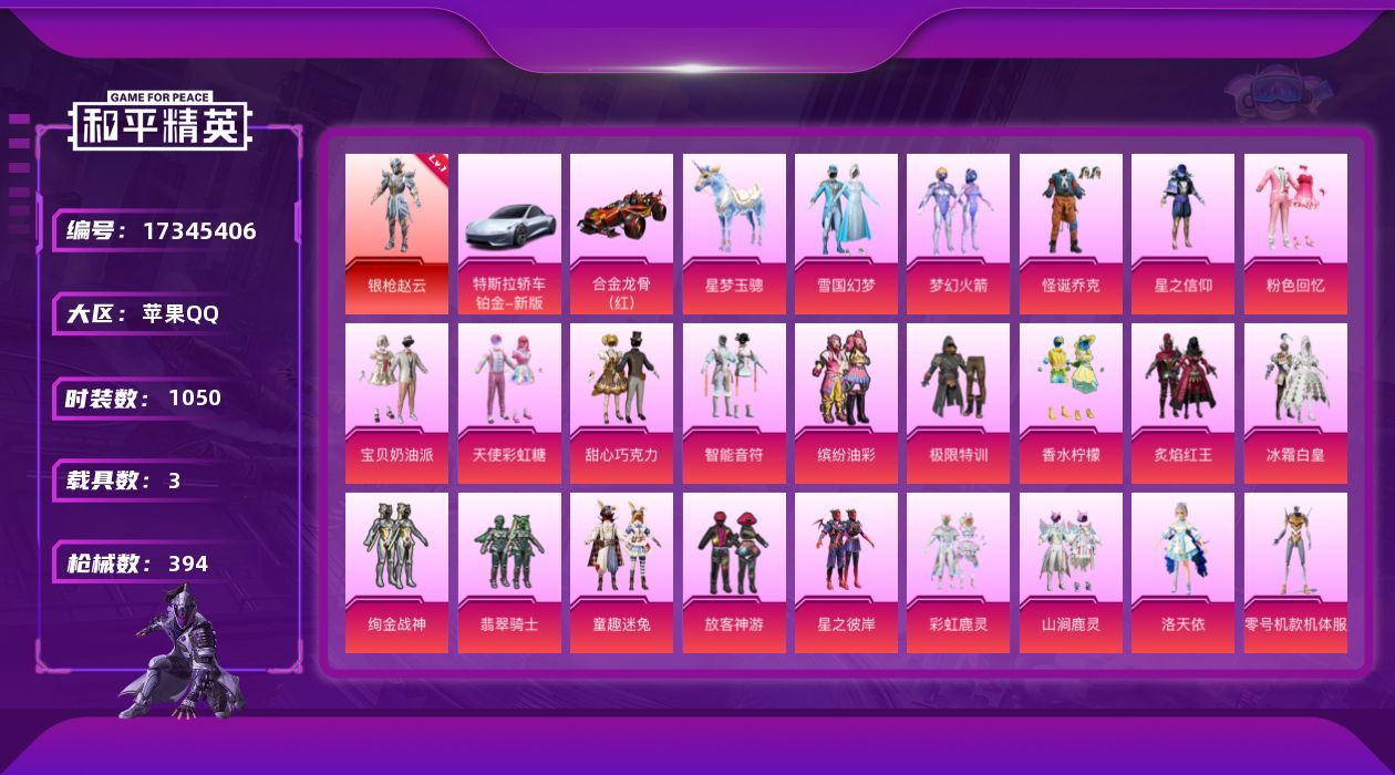 [17345406]【11867889】[11867889]HP0024 苹果Q 1红装38粉装23特效枪3载具 89套装394枪皮 89套装394枪皮 银枪赵云 (1级) 木乃伊 M416-超新星 (9级) AUG-星梦奇缘 (9级) 奇异狩猎者 赤蝎幽灵 M416-黄金龙骨 AWM-黄金龙骨 M416-星际漫游 AKM-缤纷海域 AKM-百万伏特 SCAR-L-粉色回忆 都市猎人 浪漫天命 派对舞王 天网终结者 派对舞王(金靴子) 特斯拉R尊享铂 合金龙骨红色 星梦玉骢黄螳螂 梦幻火箭 雪国幻梦 赵灵儿 绯穹魔姬 宝贝奶油派 天使彩虹糖 甜心巧克力 千金淑猫 洛天依 天星战神 怪诞乔克 智耀战神 酣梦娃娃 智能音符 缤纷油彩 放客神游 莲影清波 星之信仰 橘柚倾心 粉色回忆 极限特训 启明星 暗夜鎏金 香水柠檬 翡翠骑士 绚金战神 童趣迷兔 冰霜白皇 炙焰红王 暖熊萌萌 霞光圣骑 炙焰牛王 星之彼岸 甜梦小狐 山涧鹿灵 彩虹鹿灵 寒光使者SCAR-L-梦幻火箭 (5级) M416-五爪金龙 (1级) AKM-甜心宝贝 (7级) M24-星之信仰 (4级) AKS-74U-星穹咏叹调 (5级) UMP45-雪国精灵 (7级) Kar98K-巳巳如意 (5级) M762-甜蜜誓约 (5级) DP-28-豹影疾电 (5级)Mk14-闲梦青缨 (4级) AMR-炫光之旅 (4级) GROZA-香水柠檬 (7级) AUG-星之彼岸 (2级) Kar98K-绿意幻情 (5级) M416-暖熊萌萌 (1级) P90-甜蜜草莓 (7级) Kar98K-未来歌姬 (1级) 平底锅-林间仙鹿 (7级) 破片手榴弹-粉粉猫爪 (7级) 烟雾弹-猫咪绅士 (5级) 烟雾弹-甜梦果泡 (1级) 龟仙人 暗夜之虎 萌神柯基 红熊茄茄 雪山精英 呆萌铁蟹 鹰眼刺客 绯红秘境 兔兔白日梦 沙漠守护者 暗夜之虎 迅捷狂鲨 深海小丑鱼 大橘为重 胖达圆圆 胖达团团 暗夜契约 暗影哥特 团圆交子 瑞龙福将 纯白誓言 粉红小猪 豚鼠丹丹 水银刺客 狂沙舞者 漫步者 冰爽海盐 梦之呓语 影双刃 军刀雅典娜 英勇保护者 弄潮海豚 AKM-奇异狩猎者 M762-奇异狩猎者 M762-瑞龙福将 M24-奇异狩猎者 M249-古堡领主 S686-奇异狩猎者 M24-香水柠檬 梦幻火箭飞行器 童趣迷兔飞行器 星之彼