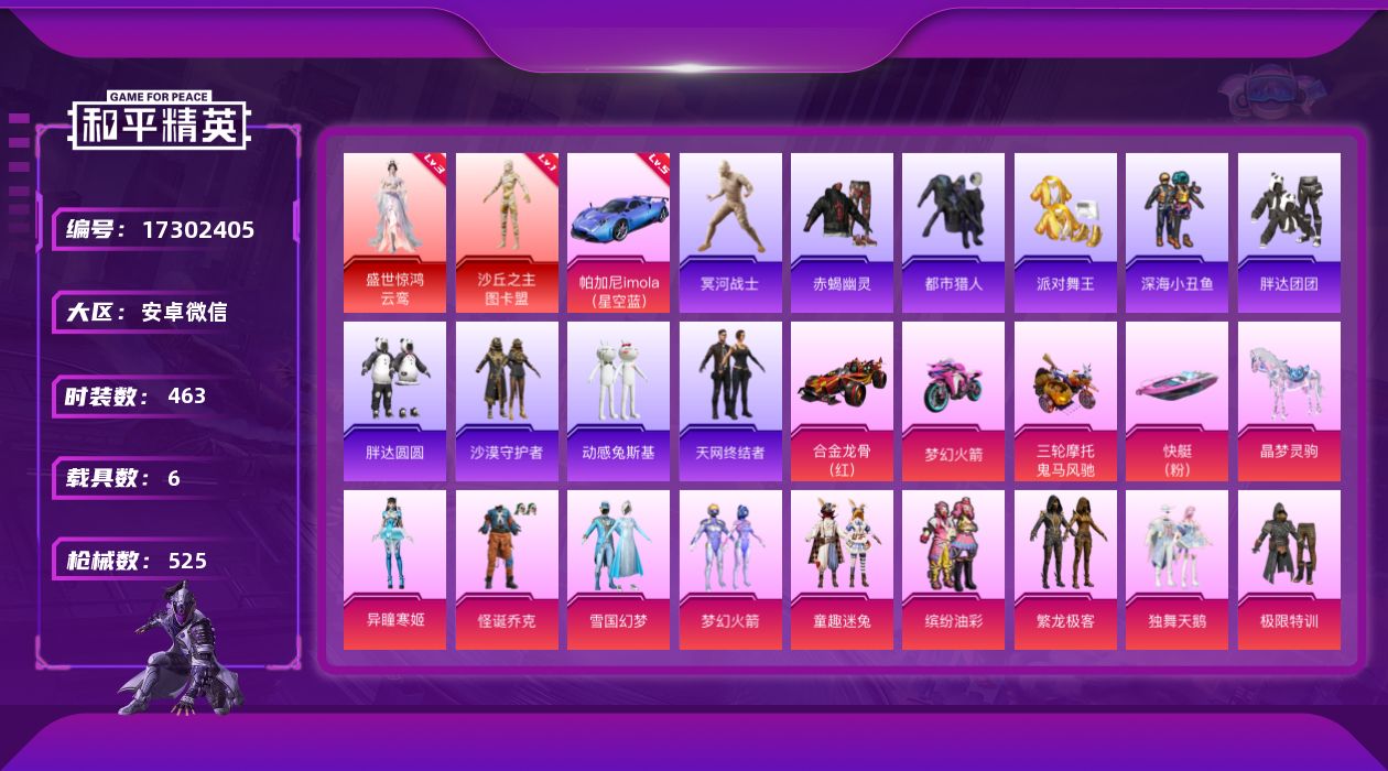 [17302405]女号-29印记-5绝世-无敌战神框-24w热力-满天赋-2神装-65粉装-34特效枪-6载具-1僚机-21粉色飞行器-29王牌印记-463套装-525枪皮