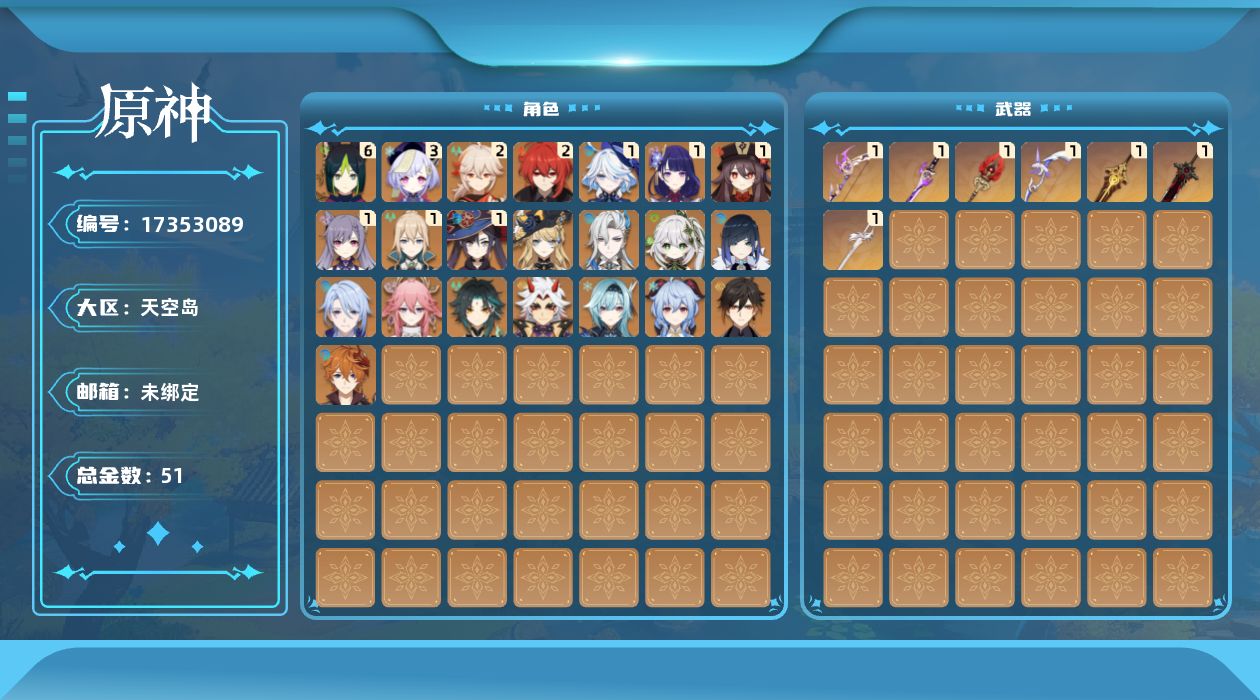 [17353089]60级/51黄/女主/23个五星角色/9个五星武器