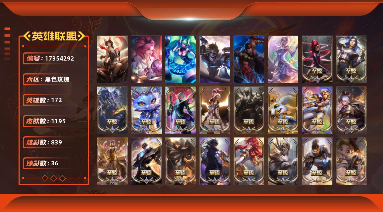 [17354292]【店主推荐捡漏号!可直接换绑】黄金段位-172英雄-1195皮肤-839炫彩-7终极-88神话-222限定-100传说-213史诗
