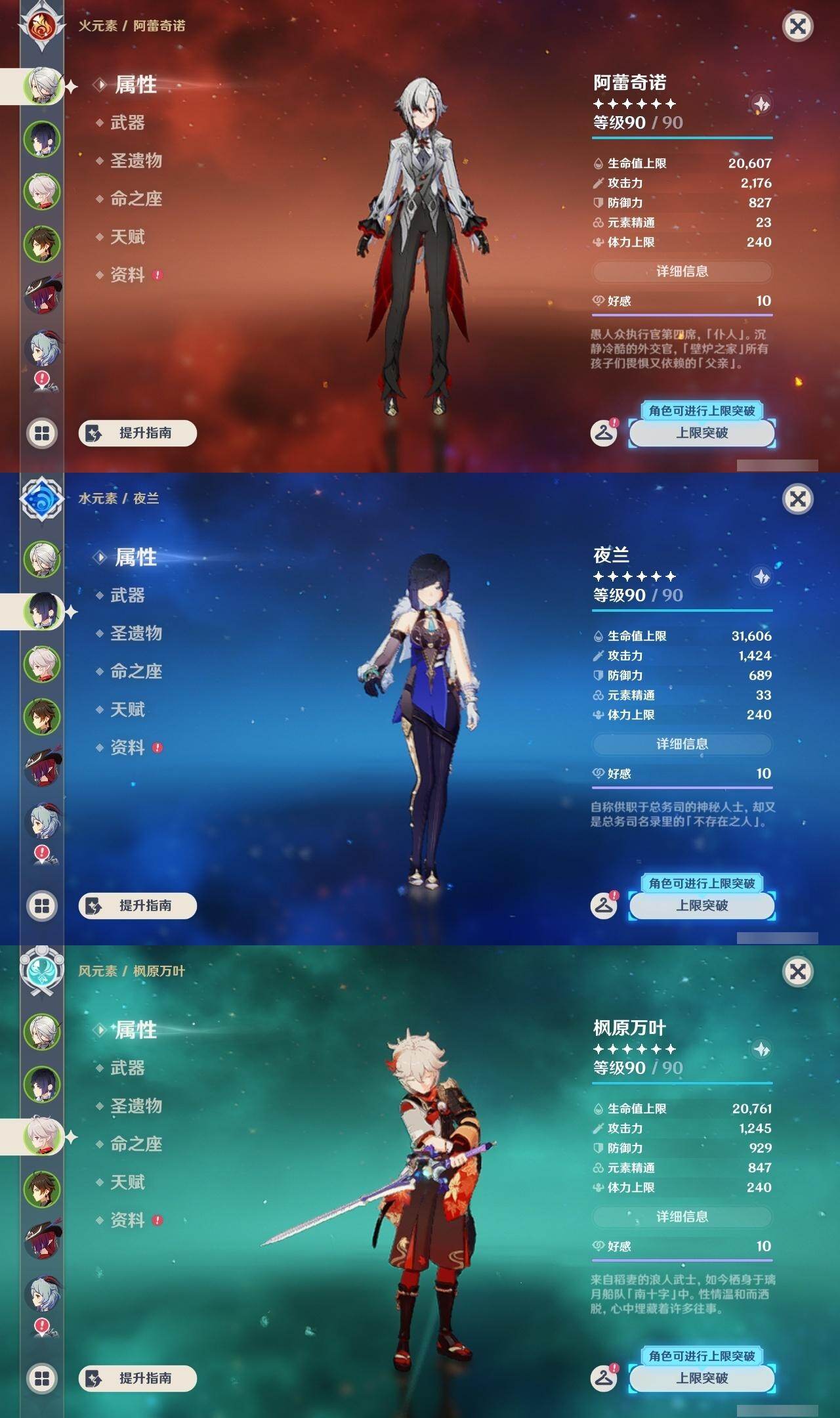 枫原万叶,钟离,甘雨,神里凌华,八重神子,雷电将军,珊瑚宫心海,达达利亚,胡桃,迪卢克,刻晴,琴,七七