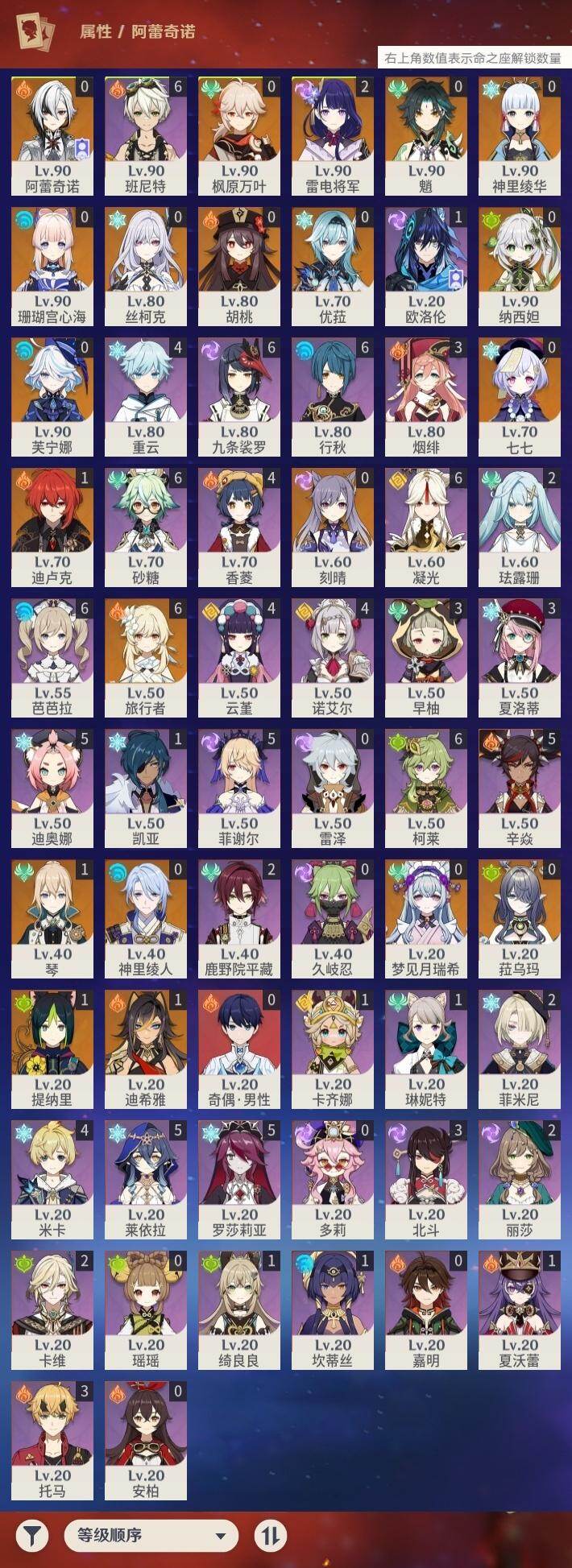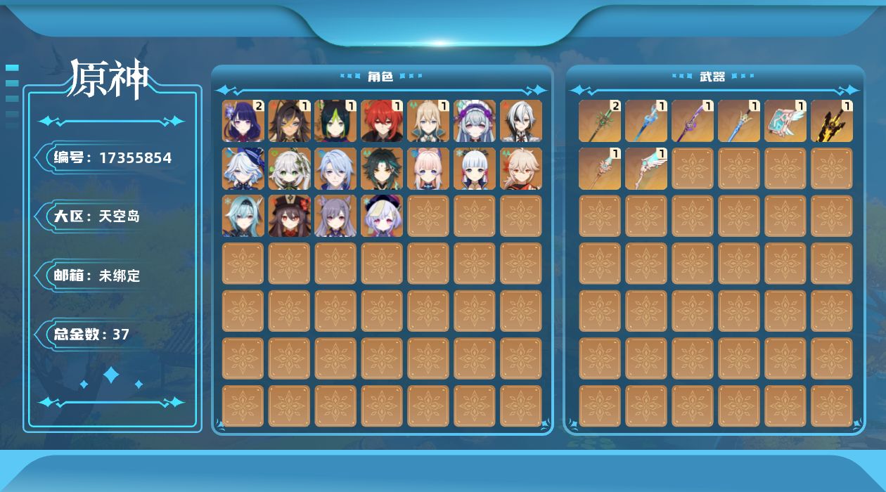 [17355854]59级/37黄/女主/20个五星角色/10个五星武器