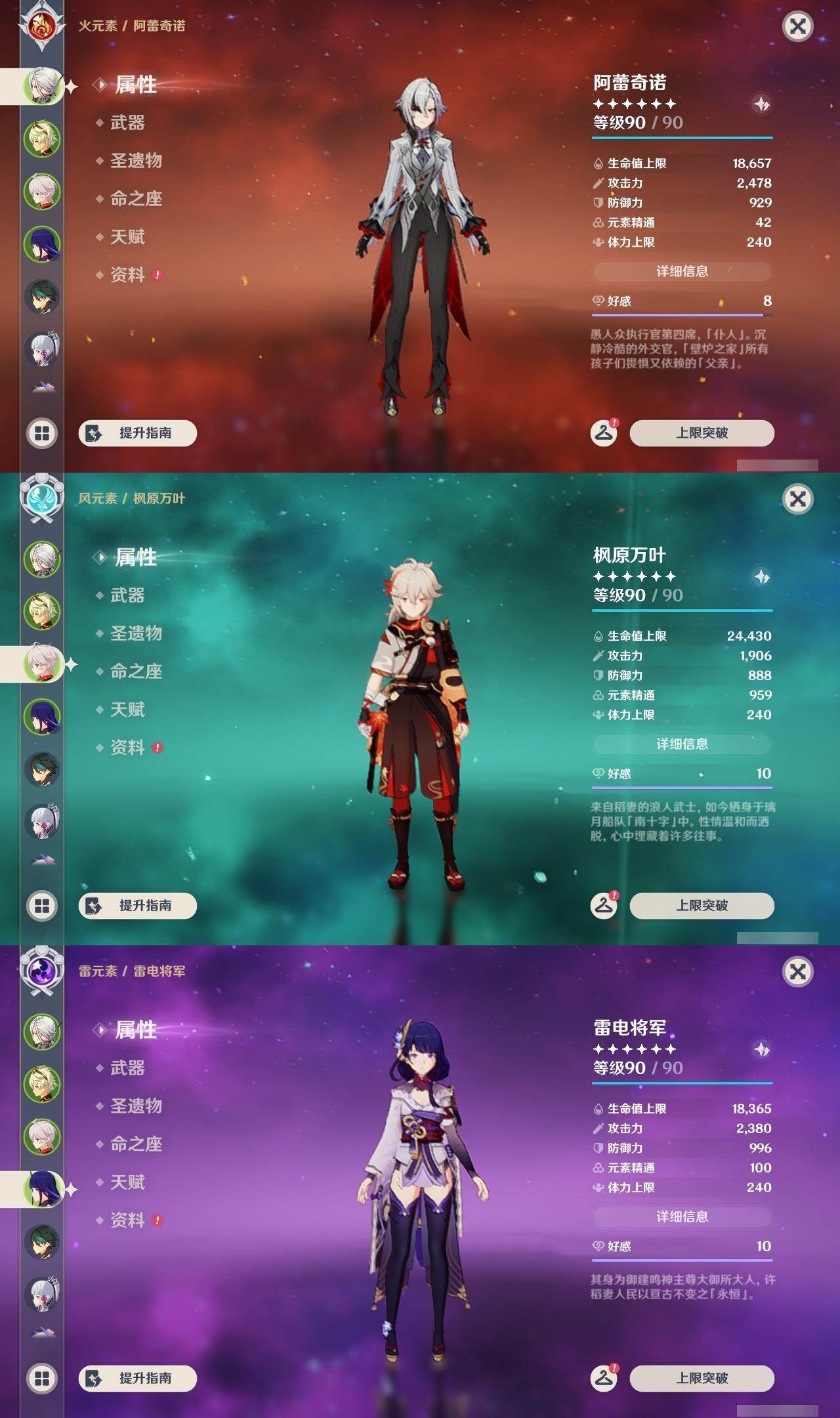 枫原万叶,雷电将军,魈,神里凌华,珊瑚宫心海,胡桃,优菈,七七,迪卢克,刻晴,琴