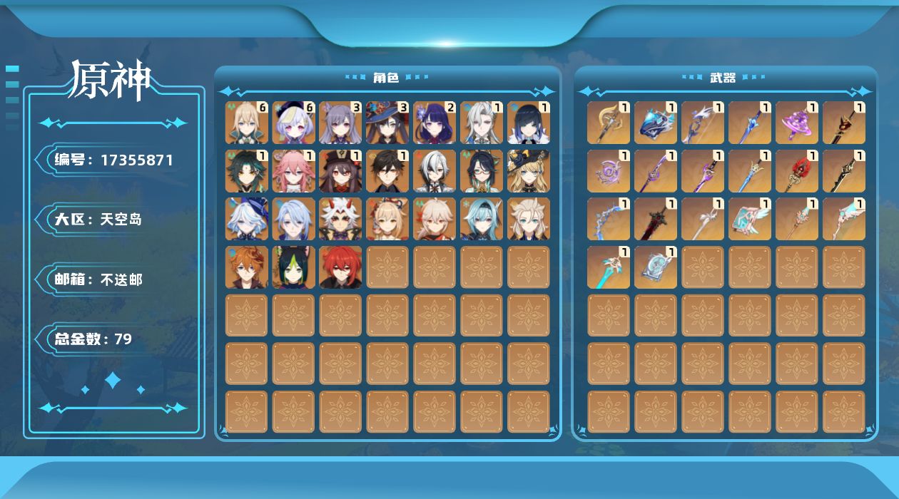 [17355871]58级/79黄/女主/24个五星角色/29个五星武器
