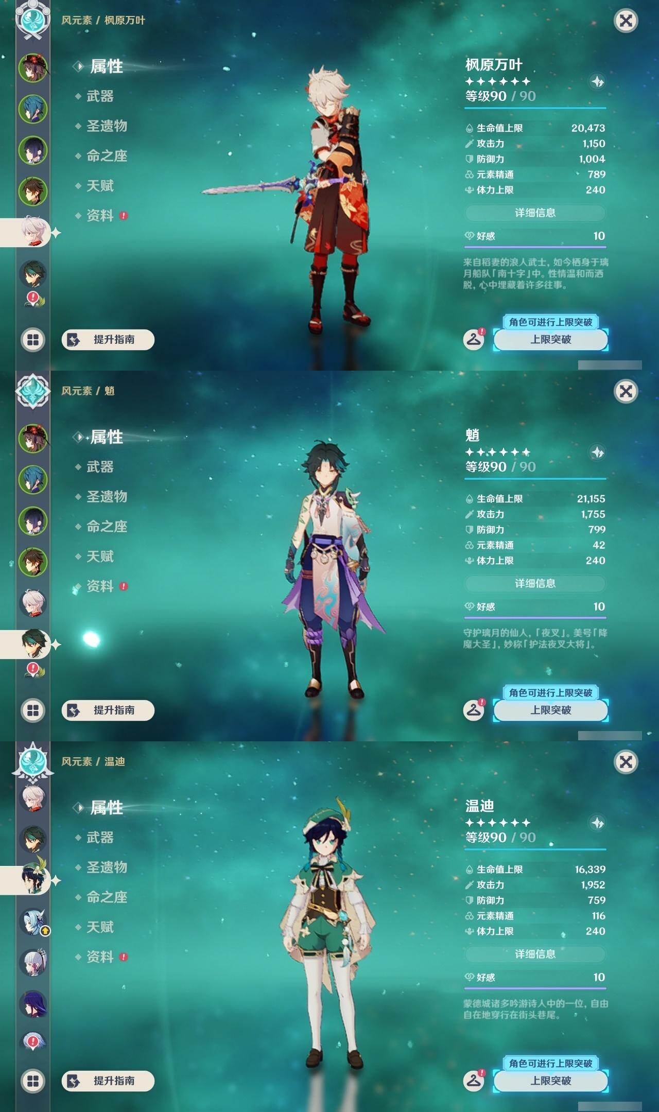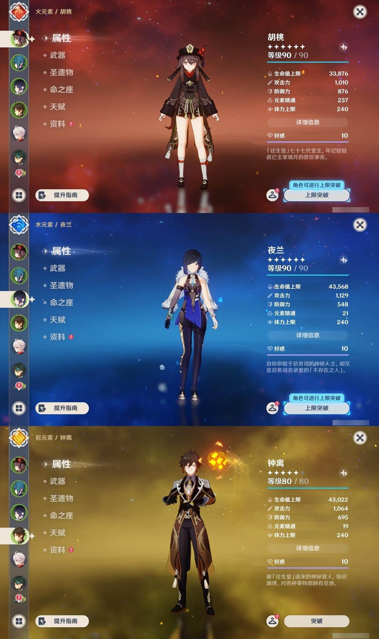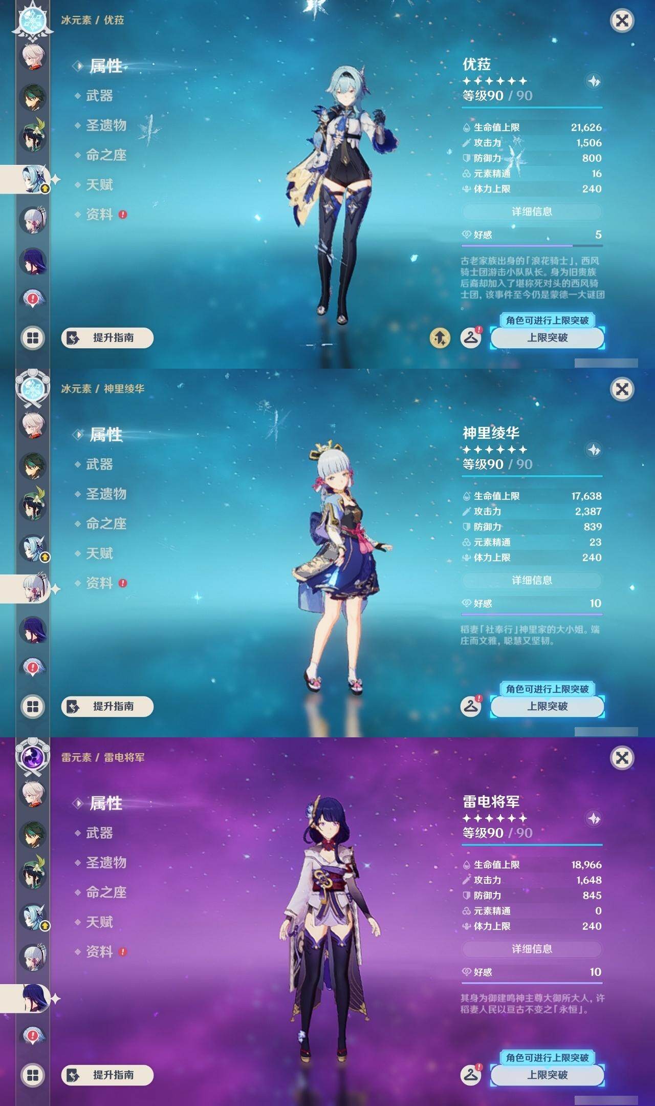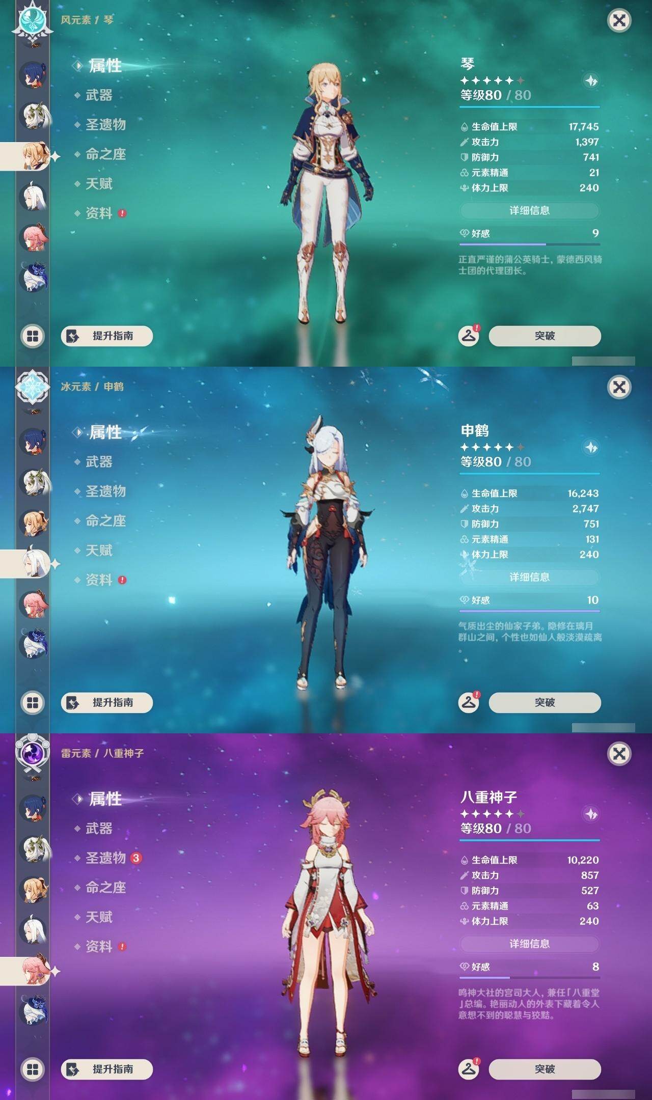 胡桃,钟离,枫原万叶,魈,温迪,优菈,神里凌华,雷电将军,迪卢克,琴,申鹤,八重神子,莫娜,七七,珊瑚宫心海,刻晴