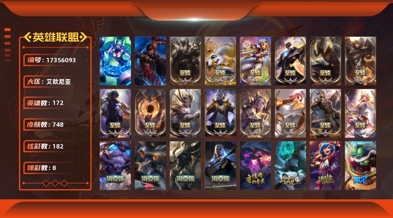 [17356093]【特价出售/店主推荐】未定级段位-172英雄-748皮肤-182炫彩-2终极-24神话-97限定-65传说-185史诗