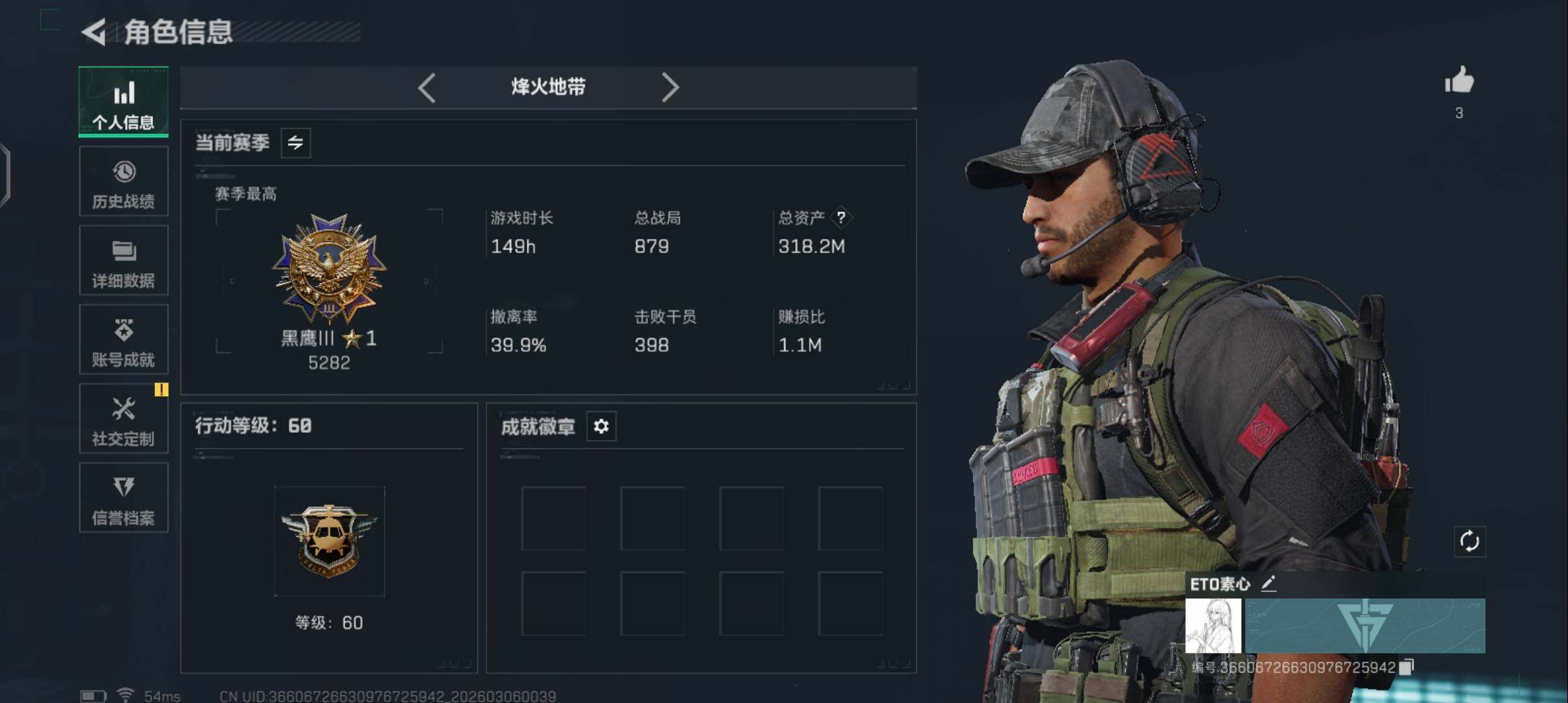 [17361141]【特价出售/店主推荐】318m总资产-300518k哈伏币-60烽火等级-黑鹰-1战场等级-无军衔