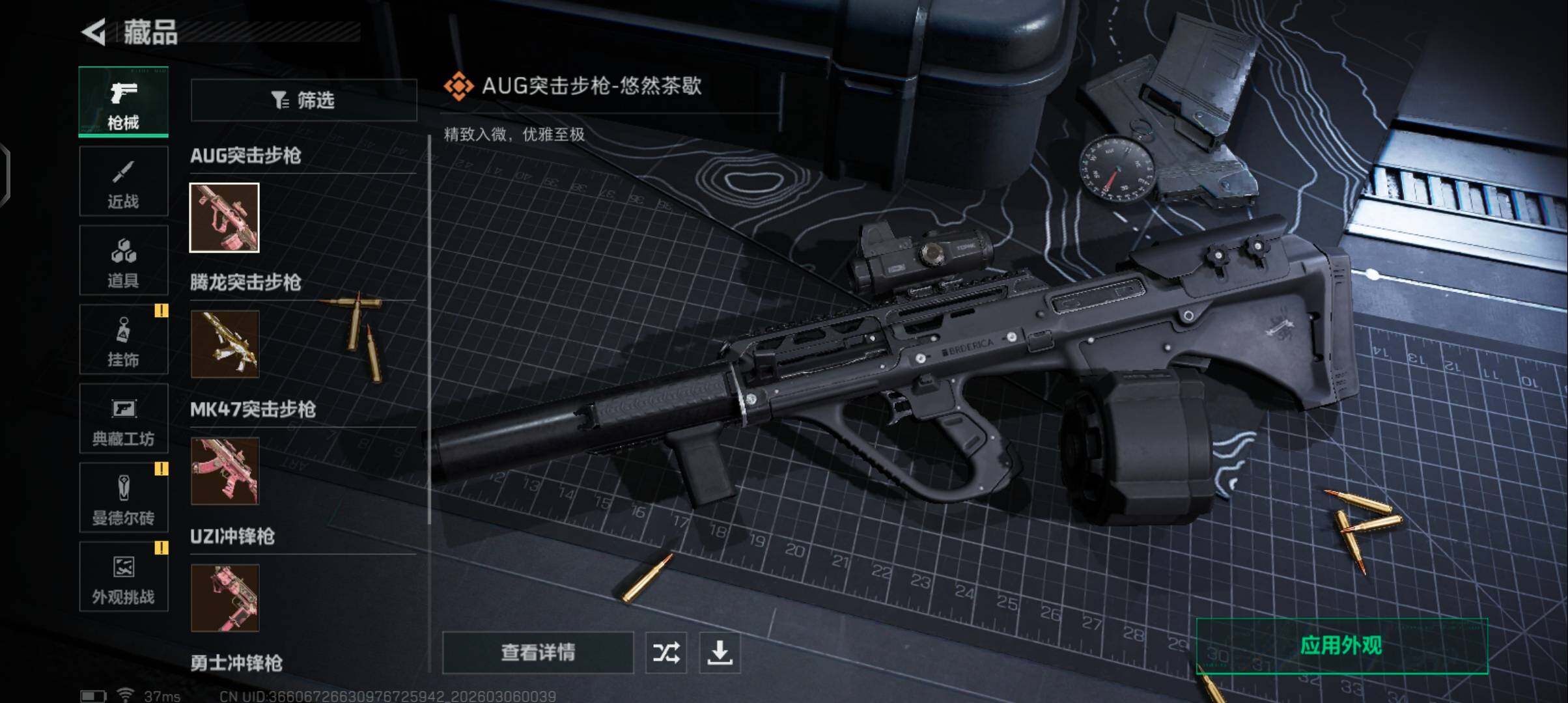 【普通外观】:M4A1突击步枪-粉色涂装,M4A1突击步枪-高雅黑,QBZ95-1突击步枪-2026,腾龙突击步枪-三角洲力量,M16A4突击步枪-高雅黑,M7战斗步枪-红色涂装,MP5冲锋枪-黄蜂,M1014霰弹枪-重击,M249轻机枪-黄蜂,QJB201轻机枪-典雅,SR-25射手步枪-黄蜂,沙漠之鹰-高雅黑
