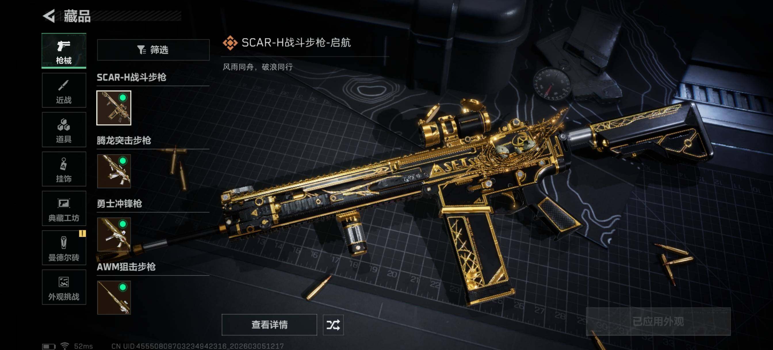 【传说外观】:SCAR-H战斗步枪-启航,腾龙突击步枪-万金泪冠,勇士冲锋枪-万金泪冠,AWM狙击步枪-万金泪冠
