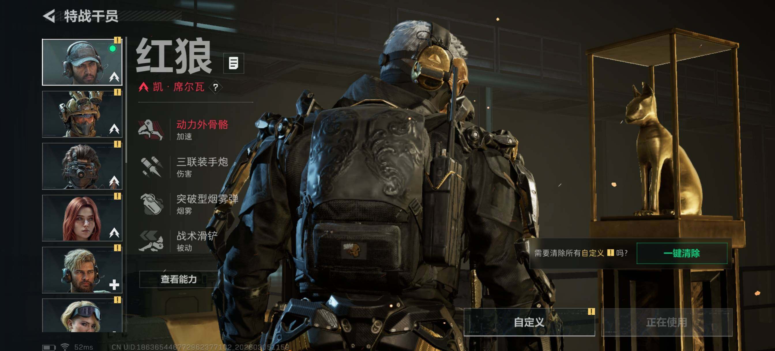 【干员外观】:红狼-蚀金玫瑰,无名-夜鹰,深蓝-不破誓约,红狼-电锯惊魂,露娜-金牌射手