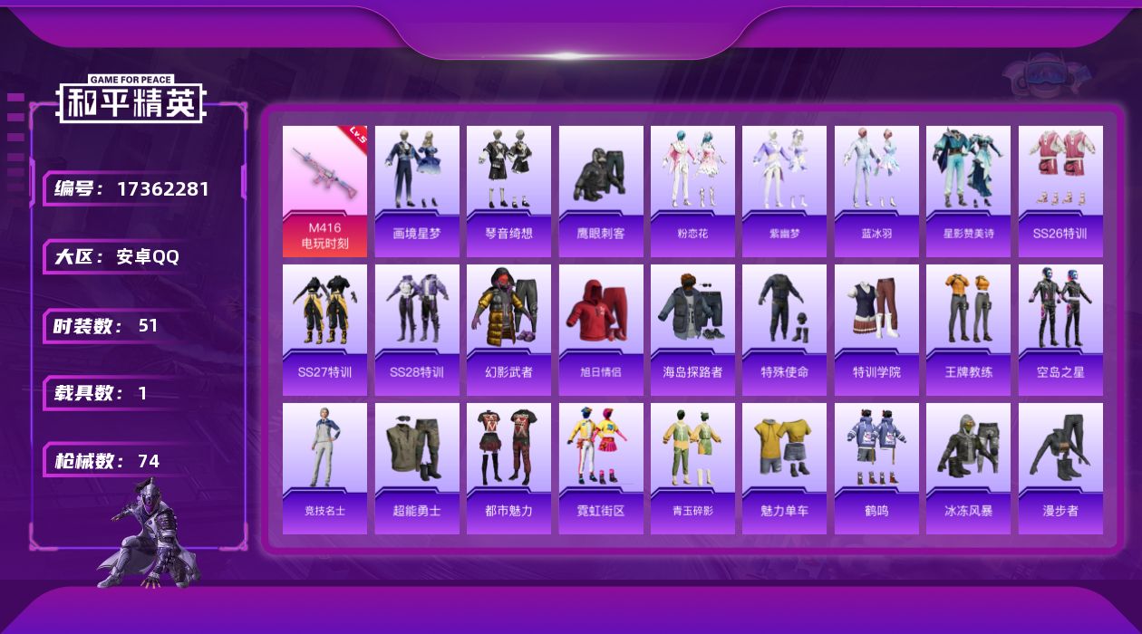 [17362281]【特价出售/店主推荐】安卓 手Q-1粉装-3特效枪-1载具-1粉色飞行器-20973热力值-2王牌印记-51套装-74枪皮