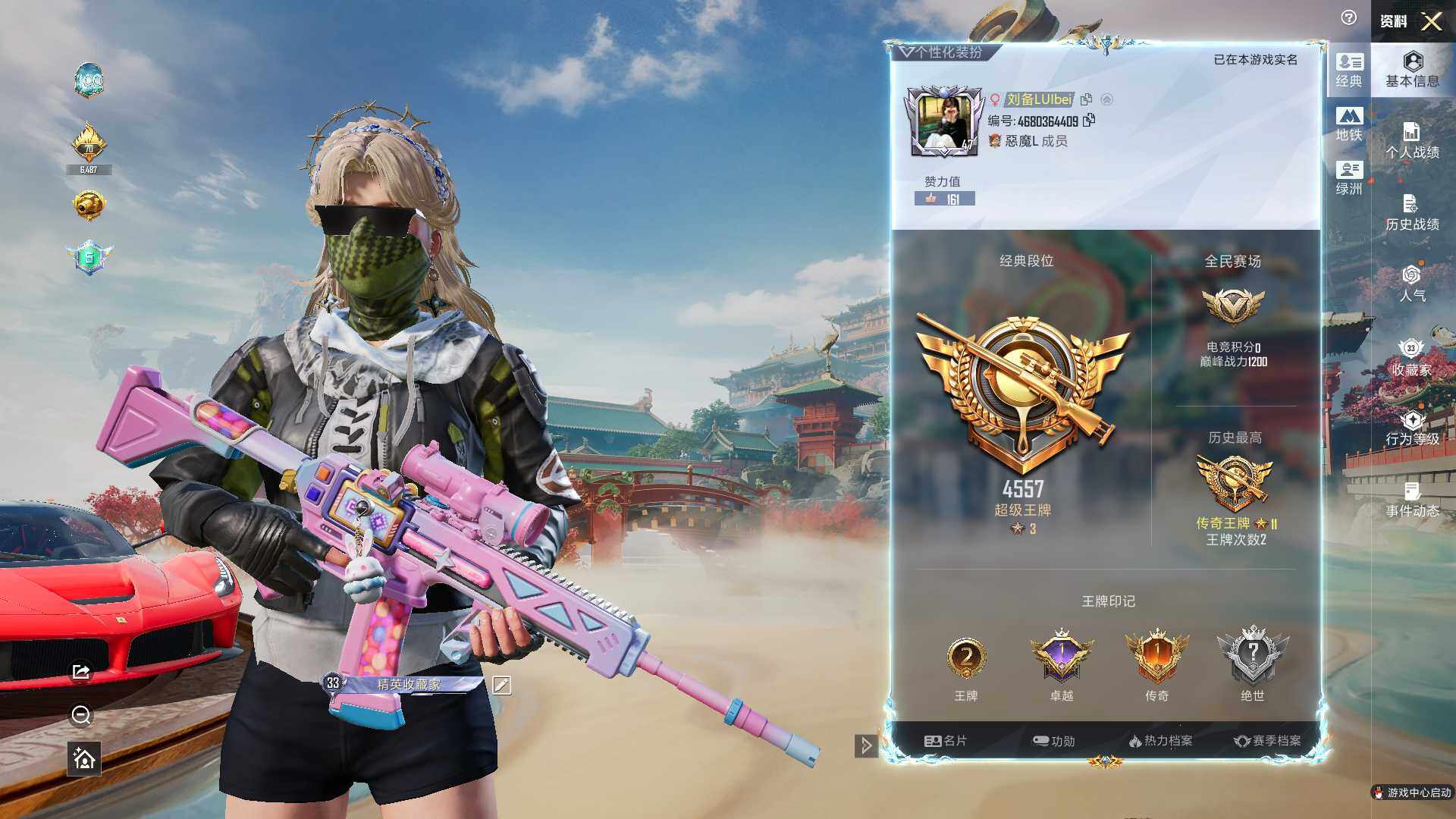 - [15547283]地铁满天赋【特价出售/店主推荐】安卓 微信-无敌战神框-18粉装-15特效枪-2载具-8粉色飞行器-162413热力值-32王牌印记-346套装-430枪皮【热门品类】:粉装-梦幻火箭,套装-浪漫天命,套装-都市猎人,套装-深海小丑鱼,套装-奇异狩猎者,角色-军刀雅典娜,套装-胖达团团,套装-胖达圆圆,套装-天网终结者,套装-金羽特工,套装-SS1特训,套装-龟仙人,套装-潮萌小黄鸭,套装-暗影哥特,套装-浪漫波比,套装-粉红小猪,角色-Mark.06,撬棍-龙胆亮银枪【粉色套装】:粉装-未来战士,粉装-宝贝奶油派,粉装-精灵迷巫,粉装-梦幻火箭,粉装-金风玉露,粉装-PEL轰鸣竞梦者,粉装-绚金战神,粉装-王牌四分卫,粉装-暗夜玫瑰,角色-零号机款机体服,粉装-筑梦精灵,粉装-第五大道,角色-烟云彩露,粉装-金丰海韵,角色-千金淑猫,角色-冷漠罗丽,角色-荧海星豚,角色-异瞳寒姬【粉色枪皮等级】:AKM-炫紫旋律(七级),AKM-绿萝繁花(五级),SCAR-L-青春物语(六级),SCAR-L-锦绣绵绵(五级),M416-五爪金龙(一级),M416-灵猫魔法师(九级),GROZA-焦糖拿铁(七级),AUG-暖羊咩咩(五级),M762-冷魅冰骑(七级),Kar98K-巳巳如意(五级),Mk14-精灵梦叶罗丽(七级),SLR-暗夜玫瑰(七级),DP-28-圣堂之誓(五级),DP-28-豹影疾电(五级)【粉色载具】:保时捷911 敞篷版(星珀红),黑曜夜骑【粉色枪皮】:AKM-炫紫旋律,AKM-绿萝繁花,SCAR-L-青春物语,SCAR-L-锦绣绵绵,M416-五爪金龙,M416-灵猫魔法师,GROZA-焦糖拿铁,AUG-暖羊咩咩,M762-冷魅冰骑,Kar98K-巳巳如意,Mk14-闲梦青缨,Mk14-精灵梦叶罗丽,SLR-暗夜玫瑰,DP-28-圣堂之誓,DP-28-豹影疾粉色飞行器】:深海曼妙飞行器,圣域金龙飞行器,雀灵庇佑飞行器,灵猫魔法师飞行器,灵珠游龙飞行器