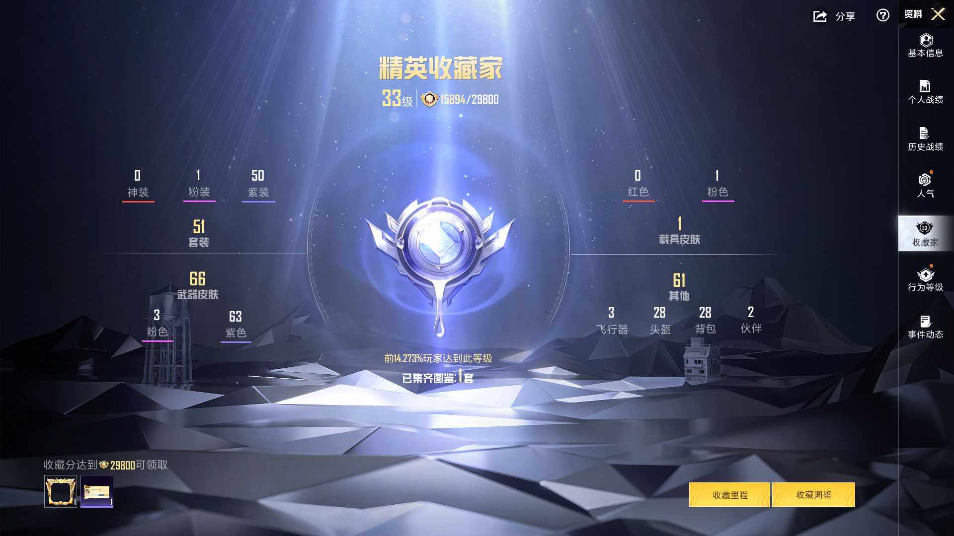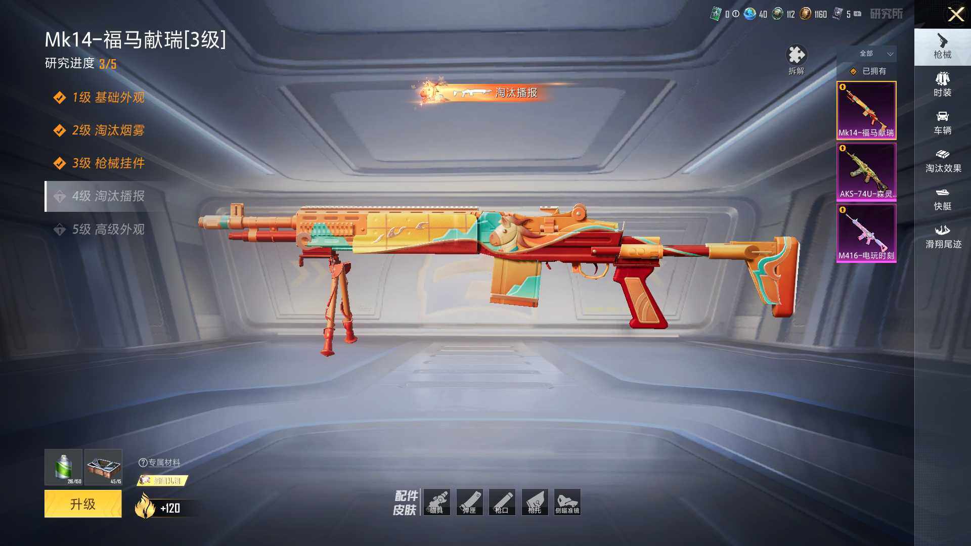 【粉色枪皮等级】:M416-电玩时刻(五级),AKS-74U-森灵之息(五级),Mk14-福马献瑞(三级)