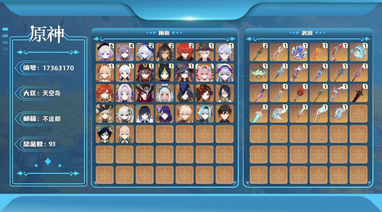 [17363170]60级/93黄/女主/34个五星角色/35个五星武器