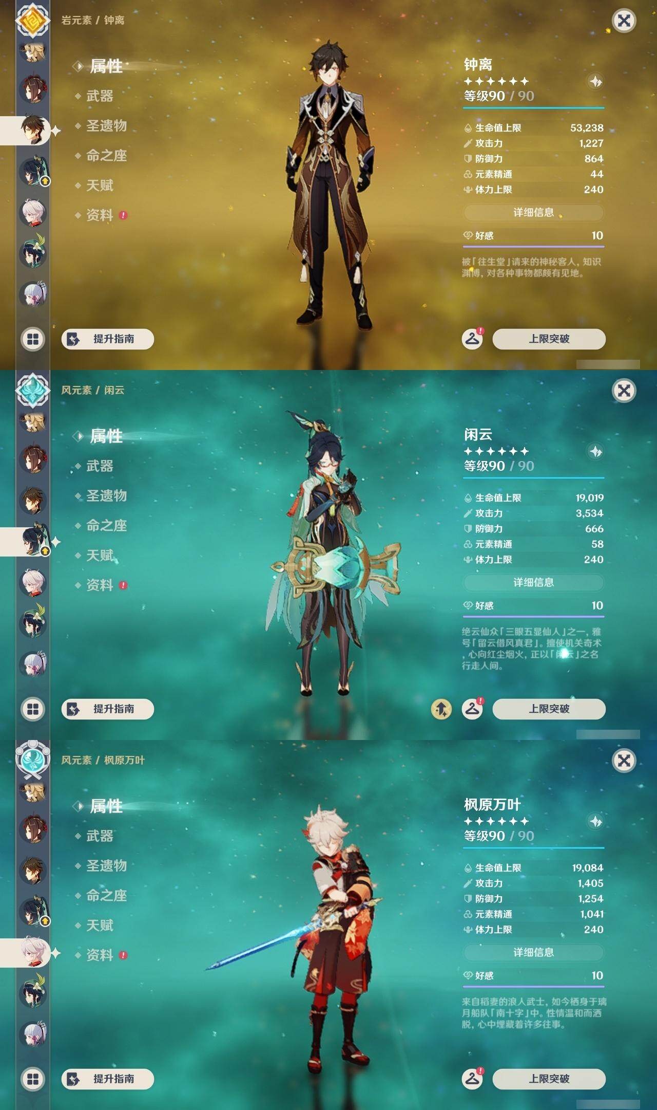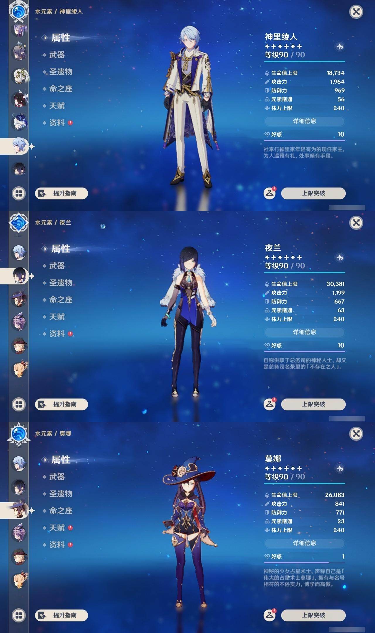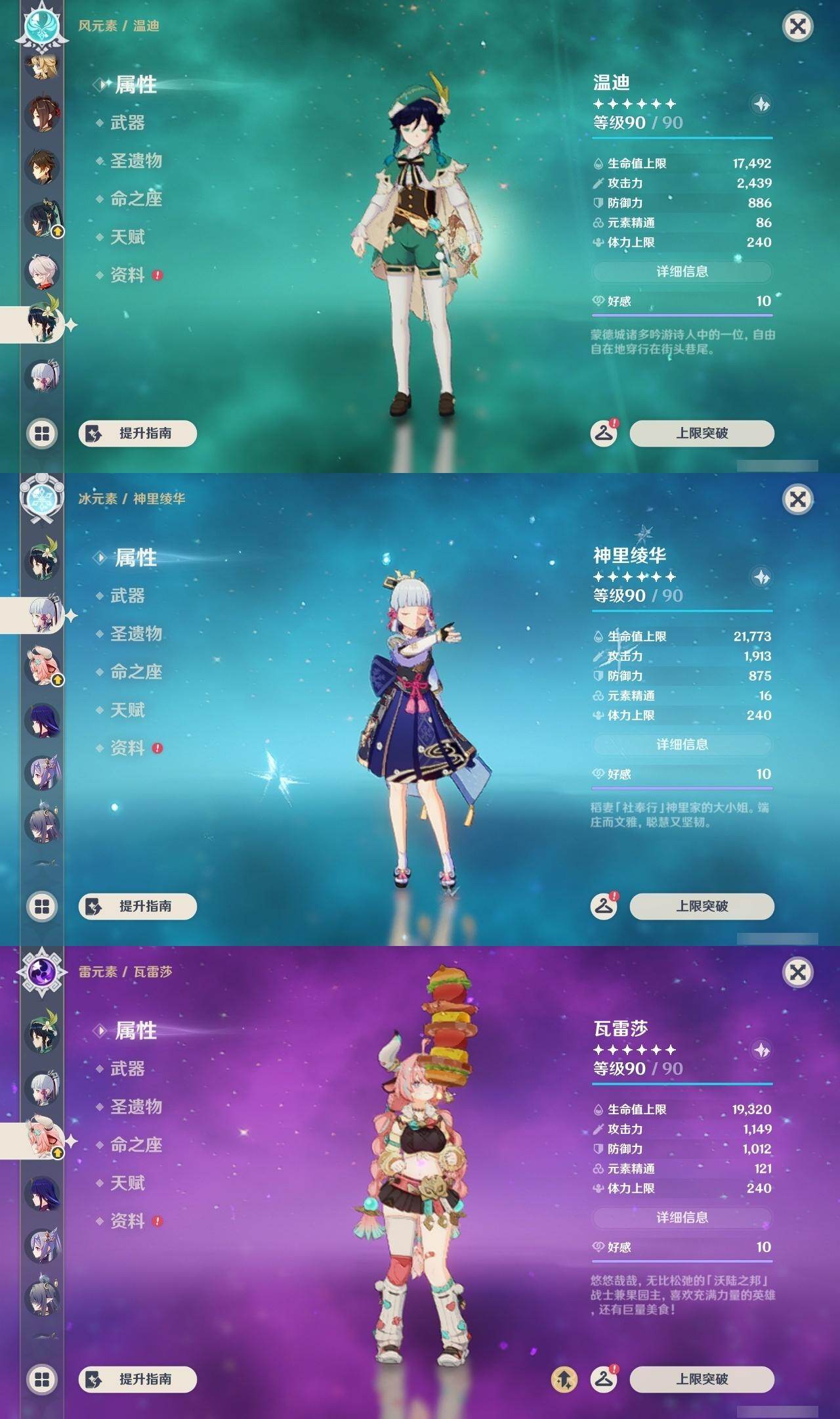 钟离,枫原万叶,温迪,神里凌华,雷电将军,刻晴,莫娜,宵宫,胡桃,迪卢克,琴,优菈,七七