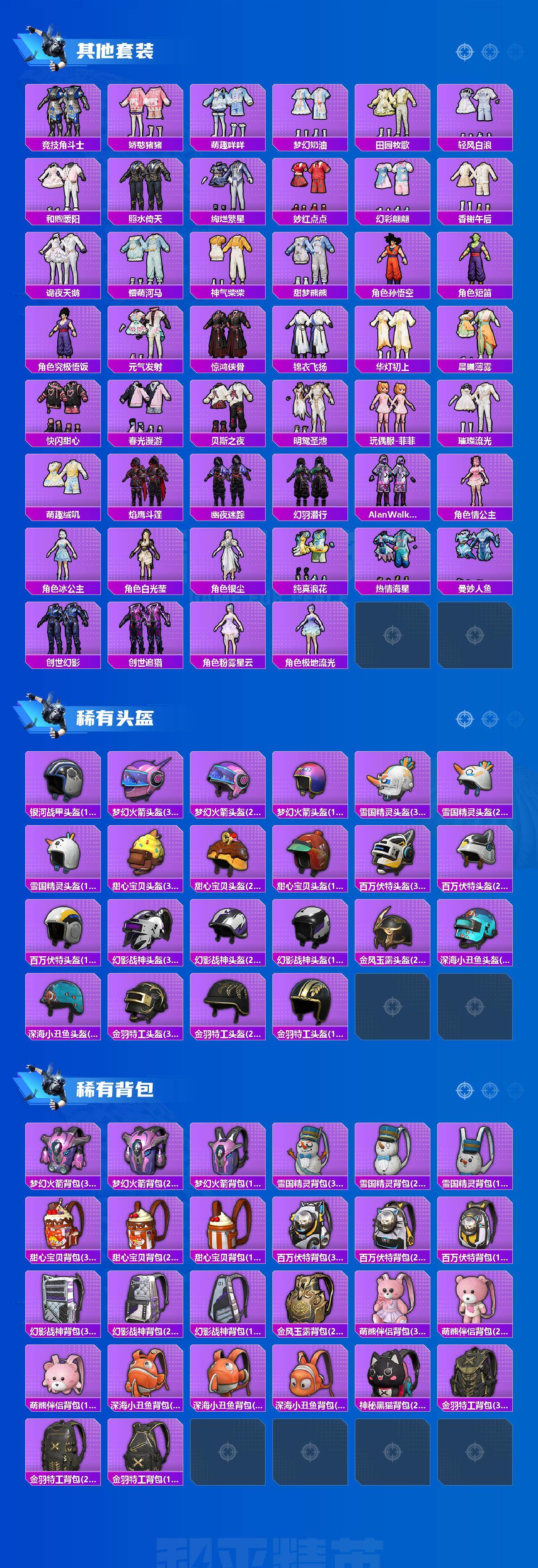 【热门品类】:粉装-怪诞乔克,粉装-雪国幻梦,粉装-梦幻火箭,粉装-音爆索尼克,粉装-繁龙极客,绝对防御上衣,套装-寒蝎幽灵,套装-浪漫天命,套装-赤蝎幽灵,套装-都市猎人,套装-冥河战士,套装-派对舞王,套装-深海小丑鱼,套装-小丑鱼,套装-奇异狩猎者,角色-军刀雅典娜,套装-胖达团团,套装-天网终结者,套装-沙漠守护者,套装-忍者信条,套装-龟仙人,套装-暗影哥特,套装-浪漫波比,角色-六号稻草人,M416-星际漫游,大砍刀-青龙偃月刀,熔岩游骑兵连帽夹克