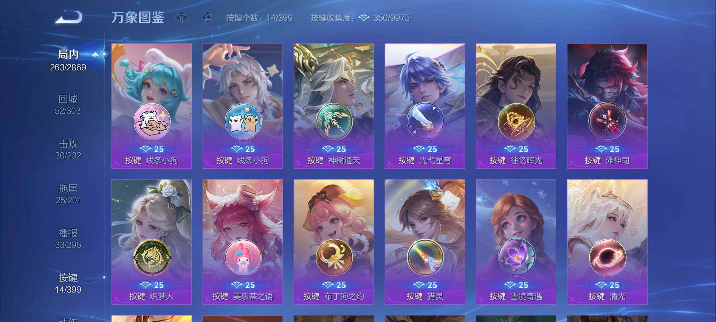 【战令限定】:黄忠火炮绅士,芈月幻夜卜梦,钟无艳超时空战士,甄姬落雪兰心,暃星界游侠,嫦娥暖冬兔眠,艾琳流音漫舞,高渐离燃音魔法,妲己灵卜魔法,鲁班七号蔬乡物语,李元芳蔬乡物语,镜青焰无极,项羽苍威无极,蔡文姬夏日便利店,虞姬夏日便利店,亚连破空之剑,孙悟空神迹守卫,孙膑茶境仙,马超访茗客,兰陵王傩神司,莱西奥光弋星穹,明世隐往忆晖光,周瑜线条小狗,小乔线条小狗