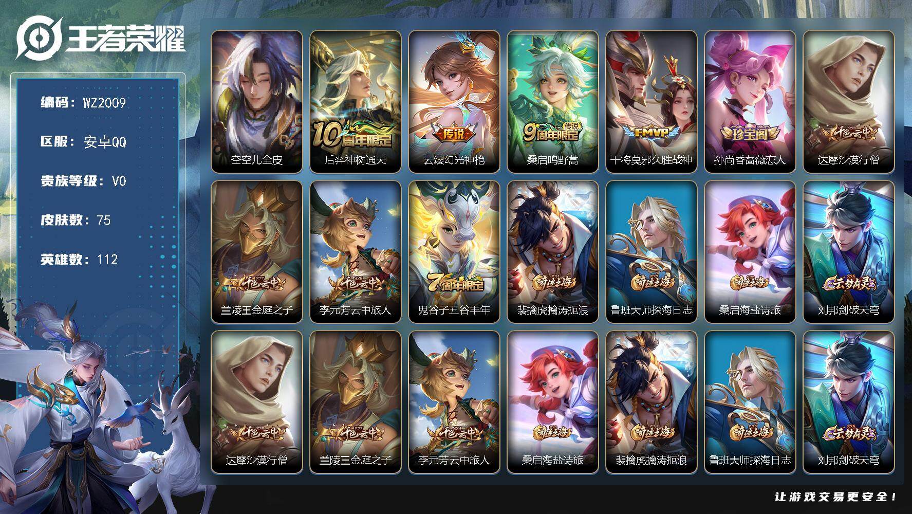 [17366110]安卓Q-75皮肤-4传说-15史诗 【英雄全皮】:空空儿全皮 【传说皮肤】:后羿神树通天,云缨幻光神枪,桑启鸣野蒿,干将莫邪久胜战神 【限定皮肤】:孙尚香蔷薇恋人,达摩沙漠行僧,兰陵王金庭之子,李元芳云中旅人,鬼谷子五谷丰年,裴擒虎擒涛扼浪,鲁班大师探海日志,桑启海盐诗旅,刘邦剑破天穹 【赛季限定】:达摩沙漠行僧,兰陵王金庭之子,李元芳云中旅人,桑启海盐诗旅,裴擒虎擒涛扼浪,鲁班大师探海日志,刘邦剑破天穹,东皇太一噬灭天穹 【史诗皮肤】:女娲万灵启世,鬼谷子五谷丰年,小乔青蛇,大乔猫狗日记,孙策猫狗日记,程咬金功夫厨神,李元芳逐浪之夏,安琪拉心灵骇客,亚瑟心灵战警,刘邦德古拉伯爵,妲己女仆咖啡,嬴政摇滚巨星,孙尚香蔷薇恋人,廉颇地狱岩魂,貂蝉圣诞恋歌 【其他皮肤】:鲁班七号班班快跑,艾琳鹤鸣心笺,莱西奥踏浪烽翎,空空儿戏梦巡演,庄周锦麟游梦,白起死霸装,姬小满小满鸭,阿古朵布丁狗之约,张良灵野札记,苏烈春野闲踪,刘备浪漫序章,戈娅玫蓝誓约,明世隐景韶洛都,少司缘灵卦秘语,干将莫邪雾都夜雨,东皇太一噬灭天穹,刘邦剑破天穹,后羿完美运算,鲁班大师探海日志,太乙真人劲辣红锅,裴擒虎擒涛扼浪,桑启海盐诗旅,李元芳云中旅人,刘禅唤灵魔甲,兰陵王金庭之子,达摩沙漠行僧,鲁班大师乓乓大师,苏烈坚韧之力,诸葛亮掌控之力,关羽龙腾万里,刘备汉昭烈帝,张飞五福同心,达摩拳王,妲己少女阿狸,宫本武藏未来纪元,扁鹊化身博士,武则天东方不败,芈月红桃皇后,赵云白执事,露娜哥特玫瑰,澜孤猎,阿古朵熊喵少女,瑶森,猪八戒年年有余,李信灼热之刃,米莱狄精准探案法,裴擒虎街头旋风,杨玉环霓裳曲,公孙离花间舞,蔡文姬蔷薇王座,兰陵王隐刃,刘禅英喵野望,孙悟空西部大镖客,王昭君精灵公主,貂蝉异域舞娘,鲁班七号木偶奇遇记 【内测皮肤】:孙尚香蔷薇恋人 【营地ID】:1848064150