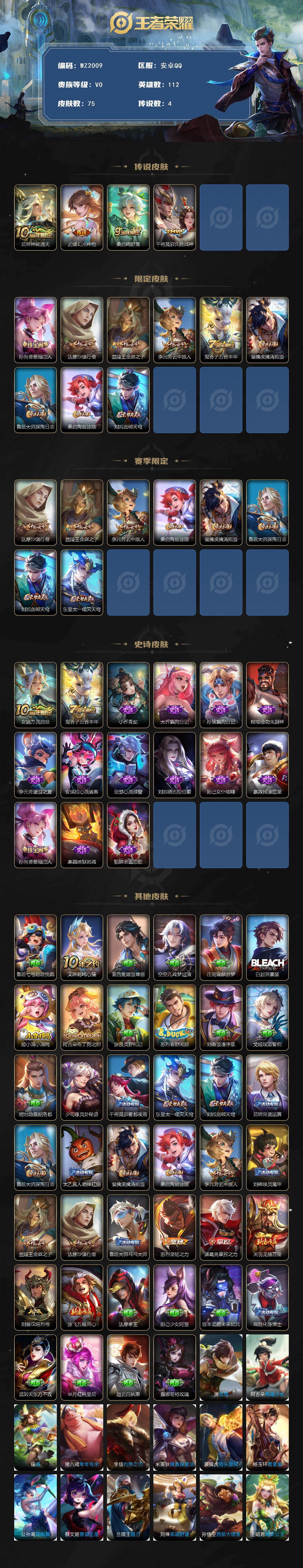 - [12151413]【商品标题】:AK205-安卓WX-V3-永恒钻石II段位-125英雄-252皮肤-2典藏-0珍品无双-0无双-0珍品传说-3传说-56史诗 【荣耀典藏】:孙悟空全息碎影,李白鸣剑曳影 【传说皮肤】:桑启鸣野蒿,孙策末日机甲,干将莫邪久胜战神 【限定皮肤】:狄仁杰阴阳师,赵云皇家上将,嬴政优雅恋人,高渐离玩趣恶龙,扁鹊奇幻香踪,白起夜都怪侠,芈月幻夜卜梦,元歌无心,甄姬游园惊梦,狄仁杰魔术师,达摩沙漠行僧,项羽海滩派对,韩信傲雪梅枪,兰陵王金庭之子,李元芳云中旅人,钟馗驱傩正仪,杨戬潮玩骑兵,鬼谷子五谷丰年,黄忠火炮绅士,苏烈千军破阵,梦奇顽趣,沈梦溪大漠名商,明世隐吟游魔法,裴擒虎李小龙,裴擒虎擒涛扼浪,嫦娥拒霜思,嫦娥暖冬兔眠,西施玲珑珍味,鲁班大师探海日志,桑启海盐诗旅,暃星界游侠,戈娅驭风魔法,阿古朵江河有灵,张良古海寻踪,蒙犽百解令,蒙恬荣光圣徽,高渐离燃音魔法,妲己灵卜魔法,鬼谷子天穹祈灯,伽罗琥珀纪元,沈梦溪龙舞盛年,鲁班七号蔬乡物语,李元芳蔬乡物语,刘邦剑破天穹,程咬金群星魔术团,周瑜熔金海岸 【赛季限定】:达摩沙漠行僧,兰陵王金庭之子,张良古海寻踪,李元芳云中旅人,钟馗驱傩正仪,苏烈千军破阵,梦奇顽趣,沈梦溪大漠名商,裴擒虎擒涛扼浪,鲁班大师探海日志,桑启海盐诗旅,鬼谷子天穹祈灯,蒙恬荣光圣徽,刘邦剑破天穹 【战令限定】:扁鹊奇幻香踪,白起夜都怪侠,芈月幻夜卜梦,杨戬潮玩骑兵,黄忠火炮绅士,明世隐吟游魔法,嫦娥暖冬兔眠,西施玲珑珍味,暃星界游侠,戈娅驭风魔法,高渐离燃音魔法,妲己灵卜魔法,鲁班七号蔬乡物语,李元芳蔬乡物语 【史诗皮肤】:阿轲暗夜猫娘,赵云皇家上将,赵云未来纪元,貂蝉圣诞恋歌,甄姬冰雪圆舞曲,王昭君偶像歌手,狄仁杰魔术师,廉颇地狱岩魂,宫本武藏鬼剑武藏,孙尚香水果甜心,嬴政优雅恋人,妲己魅力维加斯,妲己女仆咖啡,墨子龙骑士,墨子金属风暴,曹操幽灵船长,李白千年之狐,吕布末日机甲,张飞乱世虎臣,花木兰水晶猎龙者,刘邦德古拉伯爵,夏侯惇乘风破浪,兰陵王暗隐猎兽者,甄姬游园惊梦,亚瑟心灵战警,雅典娜冰冠公主,安琪拉心灵骇客,铠曙光守护者,蔡文姬舞动绿茵,李元芳逐浪之夏,白起星夜王子,阿轲节奏热浪,狄仁杰鹰眼统帅,公孙离无限星赏官,小乔青蛇,孙尚香时之恋人,裴擒虎李小龙,嫦娥拒霜思,黄忠火炮绅士,韩信傲雪梅枪,明世隐吟游魔法,鬼谷子五谷丰年