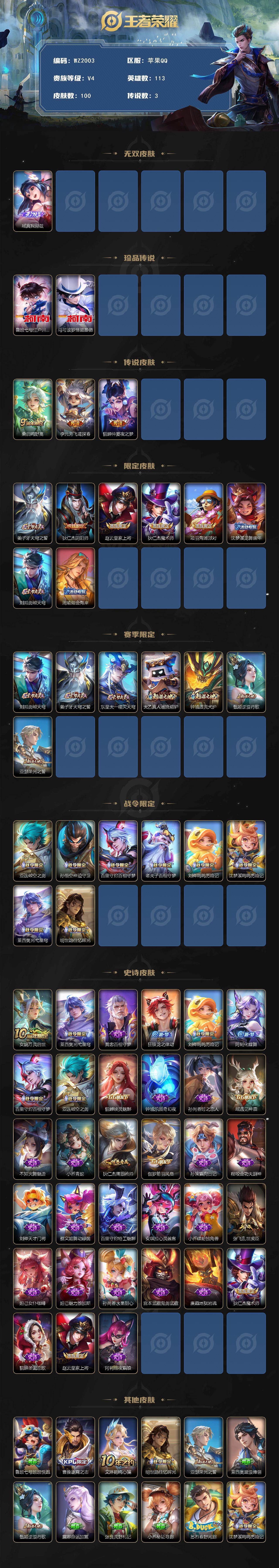 [17366700]苹果Q-100皮肤-1无双-2珍品传说-3传说-33史诗