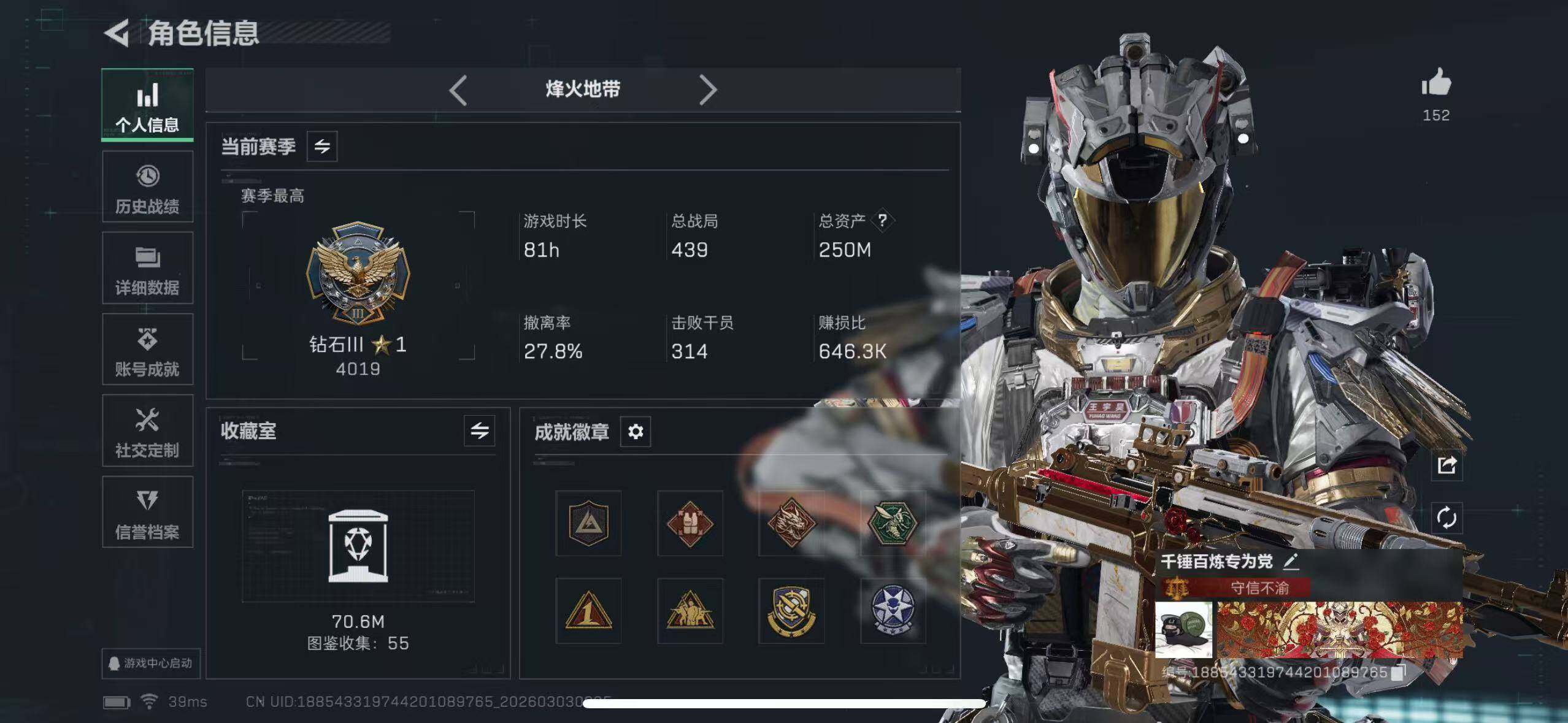 [17303313]【特价出售/店主推荐】249m总资产-13144k哈伏币-60烽火等级-钻石-50战场等级-校官
